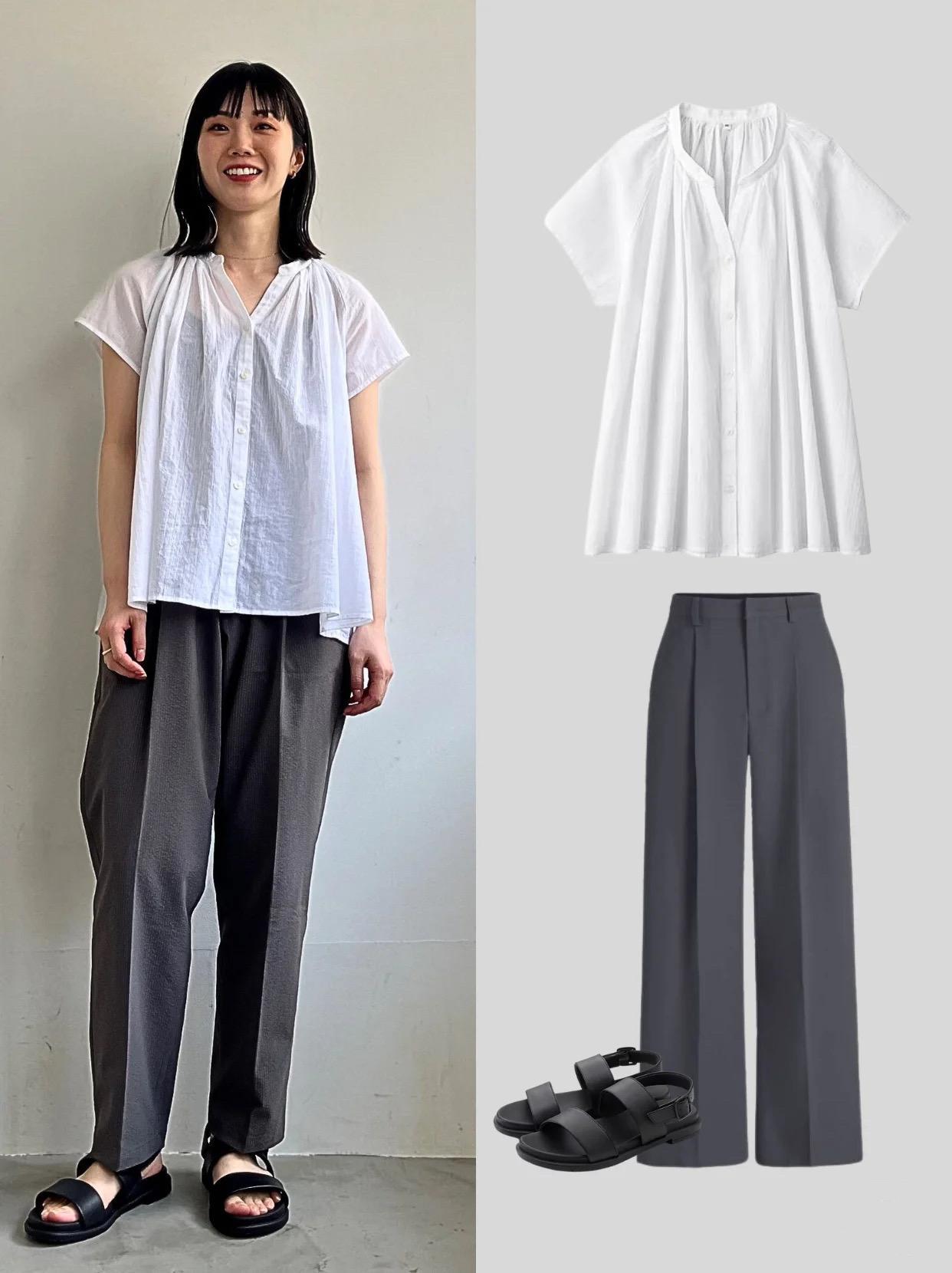 夏日通勤穿搭,也可以選擇清爽高級的黑白配。黑色襯衫+白色短褲/短裙,既酷颯又洋氣,還分外顯瘦。