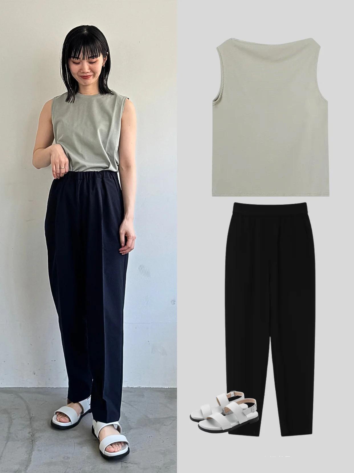 一種更適合梨形身材、也相對不挑人的穿搭look。作爲通勤穿搭,也是簡潔又提氣質。寬鬆一點的灰色背心,配上黑色錐形褲,簡潔又提氣質,腰粗、胯寬的問題都可以掩蓋。