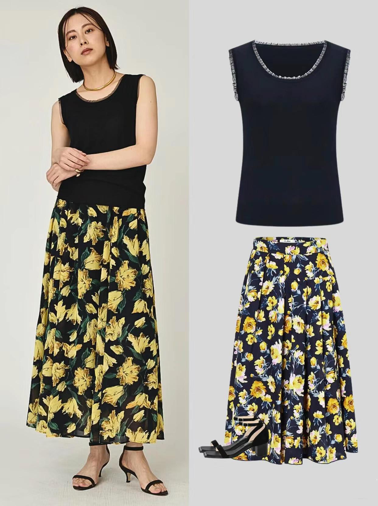 夏天裏的無袖背心,配上繁華的半身裙。既浪漫又大氣,成熟女性的風韻,優雅和魅力,盡在不言中。