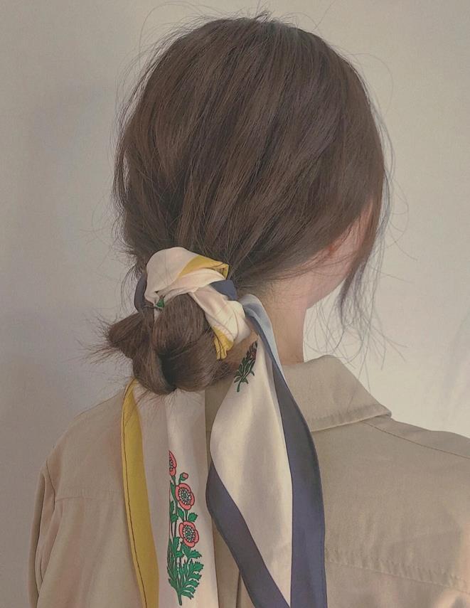 很顯唯美氣質的一款低丸子頭扎發,只利用了一根髮帶,就可以打造出這麼溫柔的扎發了,光看着一個背影就足夠吸引人了。