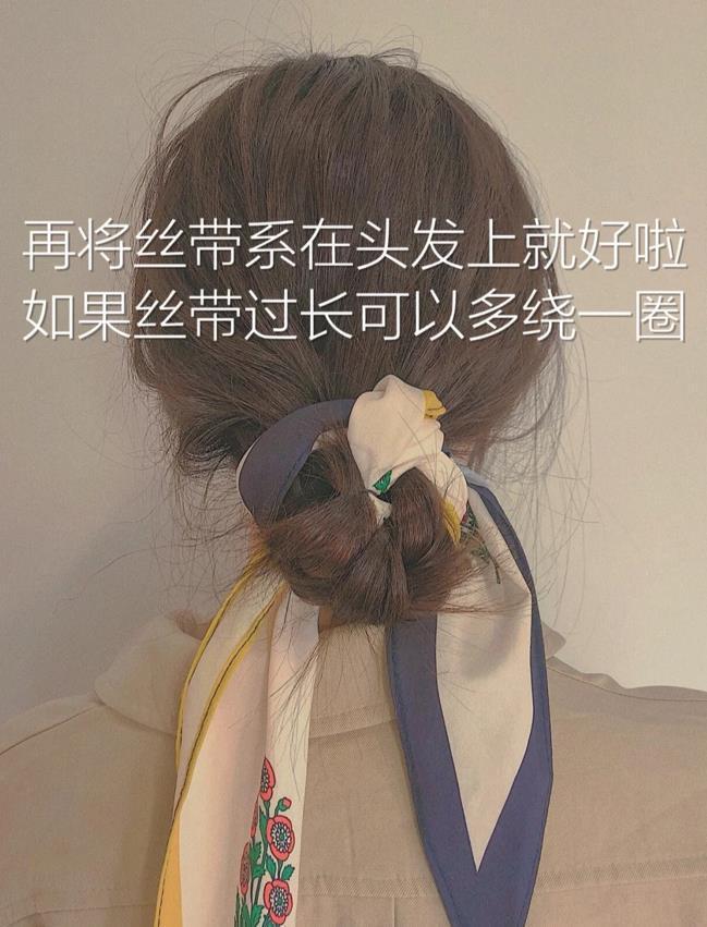 6.最後將髮帶系在頭髮上就好了,如果髮帶過長的話,那麼可以多繞一圈。