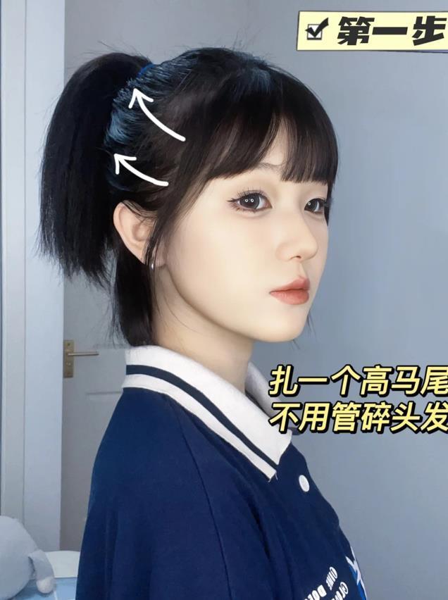 1. 首先將上半部分的頭髮紮成一個馬尾的形狀,不用太在意那些碎頭髮。