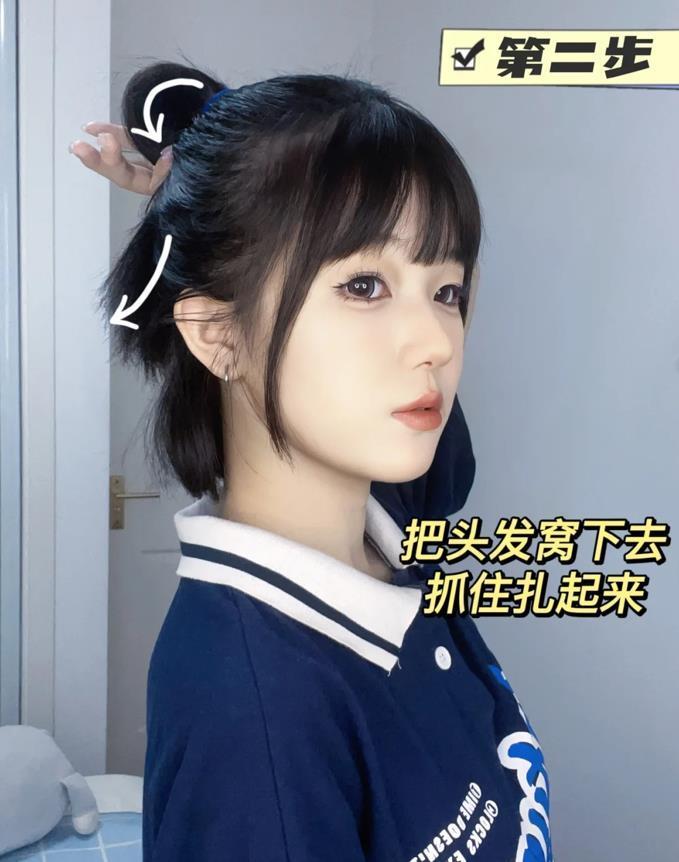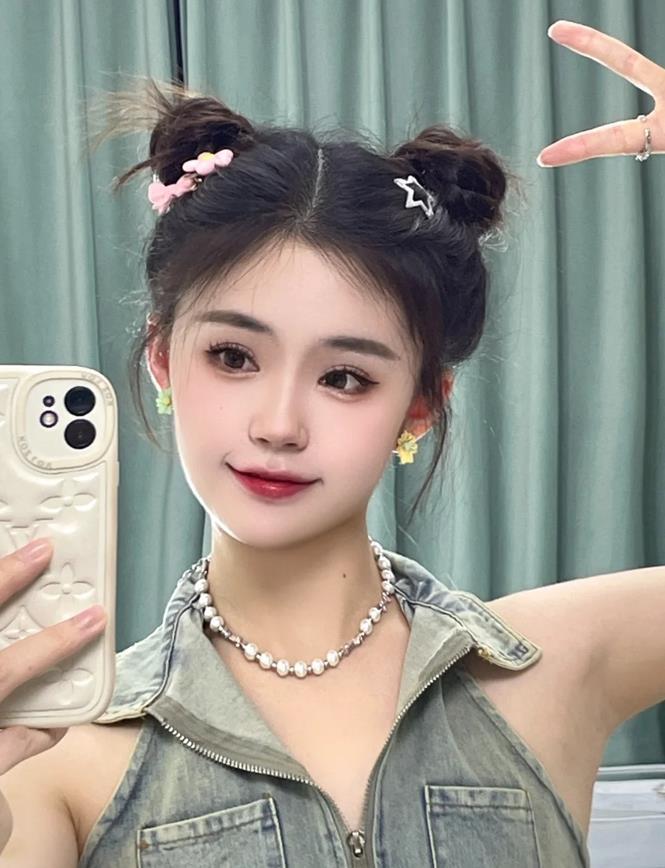 這個氛圍感丸子頭實在是太可愛了,搭配斜劉海,很好修飾了整個臉型,劉海上班還彆着兩個小發夾,少女範十足。喜歡的姐妹們不妨試試看吧!