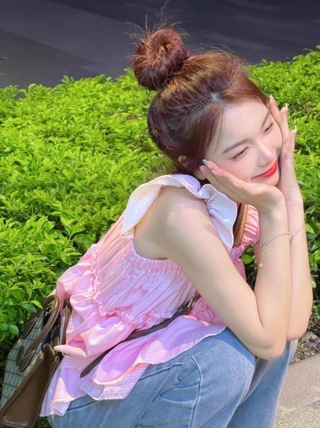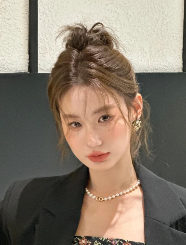 我覺得在夏天,除了馬尾扎發之外,就屬丸子頭最受歡迎了,很喜歡這個超有氛圍感的丸子頭,高高的固定在頭頂上,額頭處還留着一些髮絲進行點綴,加上精美的飾品點綴,整個人看起來就很精緻。