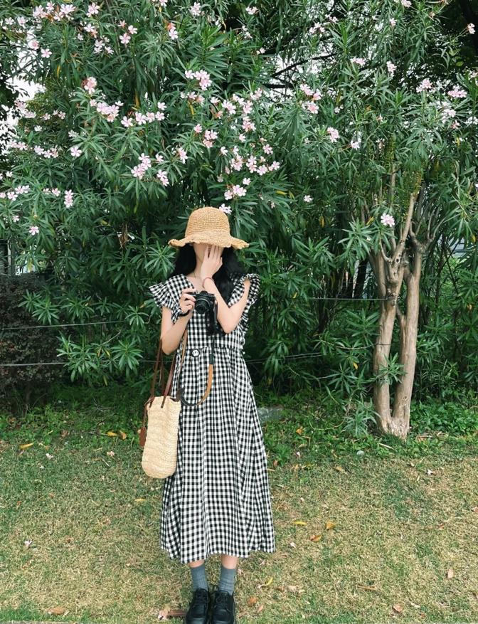 今年復古風的回潮,你的衣櫥裏又怎能少了一條格子連衣裙呢?黑白相間的格子,真的太經典耐看了,袖子處是木耳邊的設計,細節感滿滿的。加上寬鬆的裙身,穿得很舒適自在。