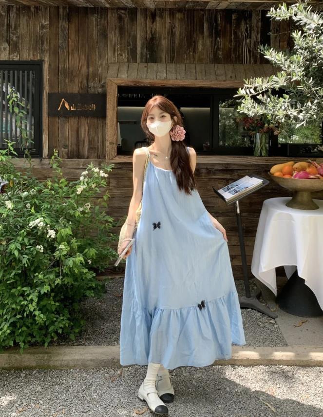 小個子女生也可以嘗試的吊帶連衣長裙,在夏天,我覺得穿長裙非常不錯,至少能很好遮掩住腿粗的缺點,吊帶的款式,很清爽涼快,隨便搭配一雙鞋子就可以出門了。