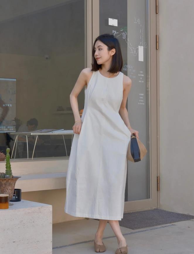 白色無袖連衣裙,很簡約的款式,輕鬆就能讓你穿出高級感,在悶熱的夏天,穿上這麼一條連衣裙,完全不會覺得悶熱,反而會給人一種很清爽涼快的效果。