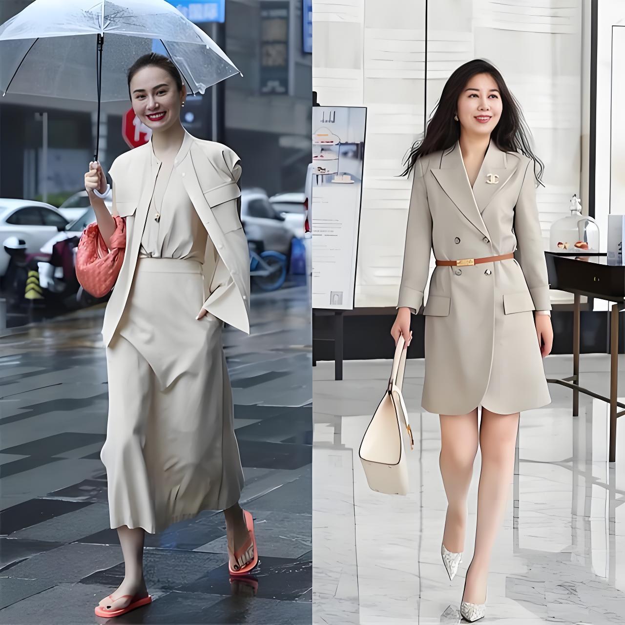 比如香檳色的西裝裙、或者利落的套裝,穿起來都很提氣質,職場大女人的氛圍輕鬆拿捏。