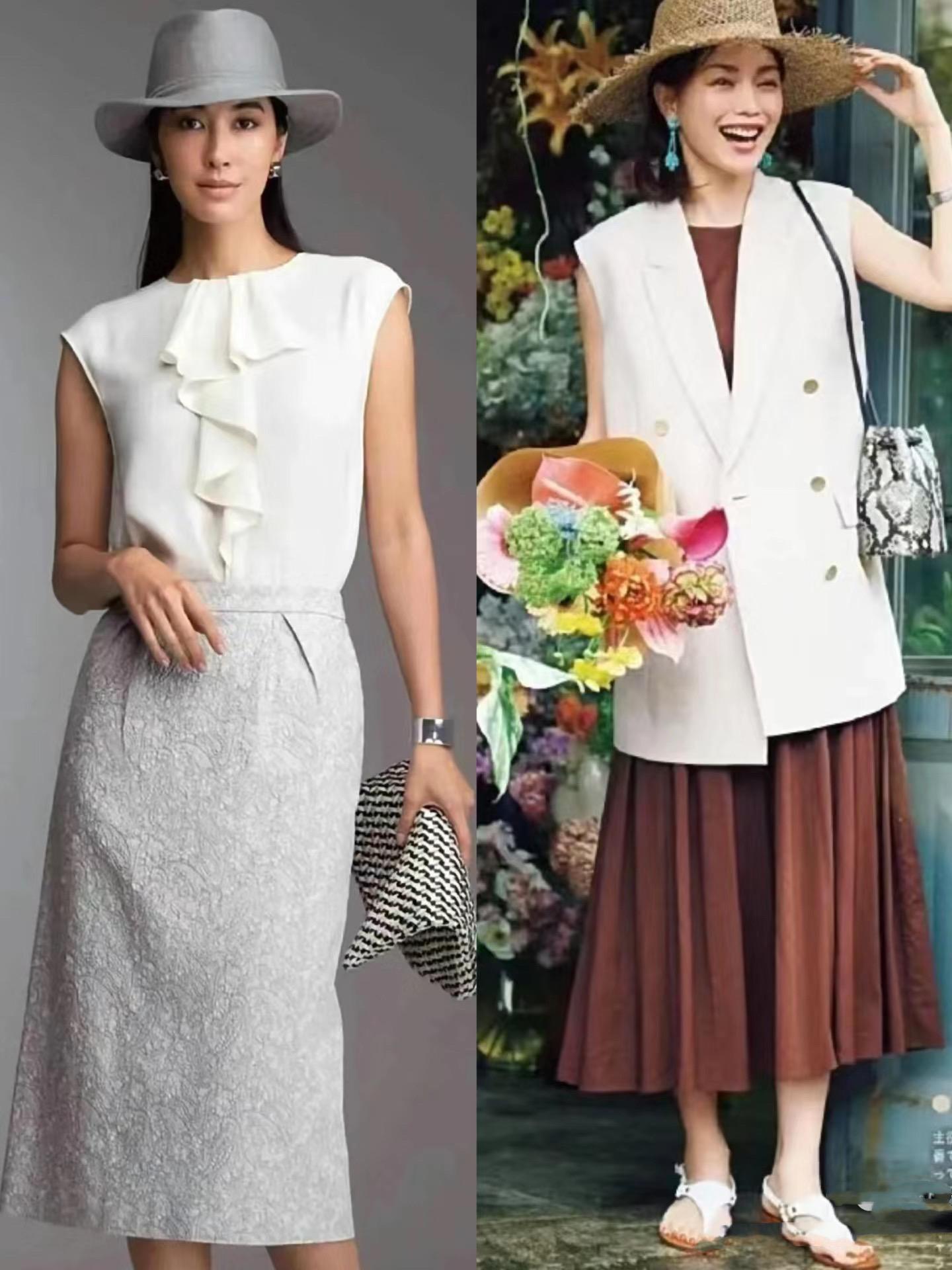 40+的年紀,早就過了盲目從衆的時候。即便是服裝款式的選擇,也熱衷於經典耐看的元素。襯衫裙、背心裙,相對寬鬆的版型舒適又自在。