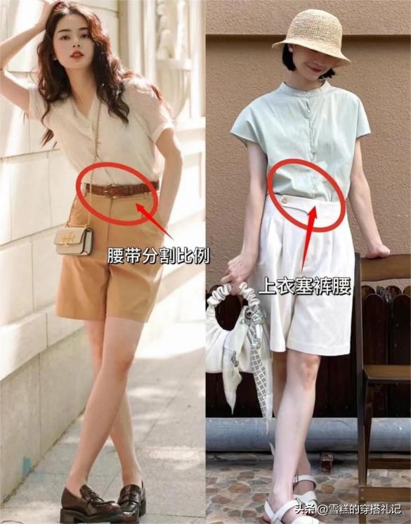 不論是短款還是短裙,都會建議優先選擇寬鬆版型,在基礎版型下增加造型+身材劃分的方式是利用皮帶腰帶來進行三七分身材的塑造。