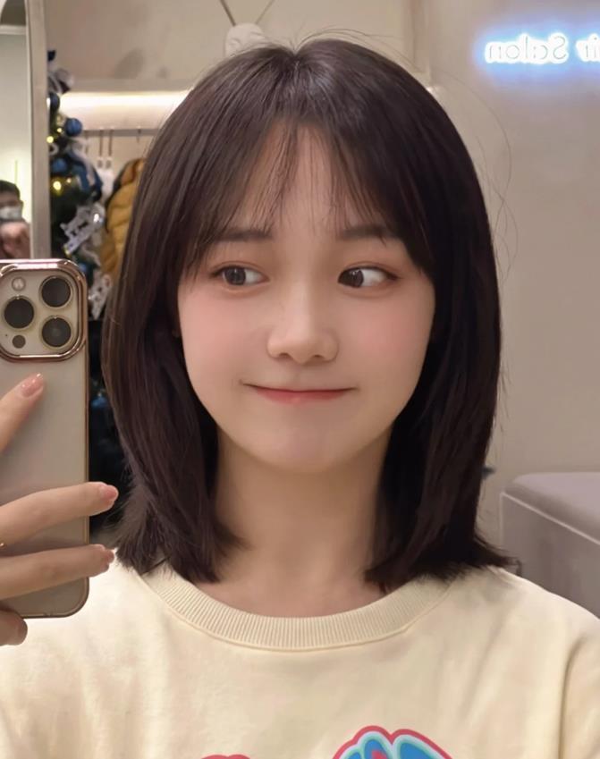這一款鎖骨發看起來就特別顯少女,超級減齡的,不管是圓臉還是方臉都非常合適,頭髮的長度修剪到鎖骨位置,這個長度相對來說比較好打理,對於個矮的身材來說,也是能很好提高個子的,視覺上非常顯高挑。搭配起空氣法式劉海,太減齡和修飾臉型了。