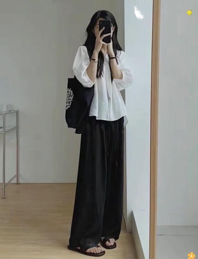 黑白配的穿搭,也太時髦耐看了,上下衣服的版型都是寬鬆的,可太藏肉顯瘦了,最重要的是可以穿得很舒適。喜歡這種棉麻材質的白襯衫,透氣性極佳的,夏天早秋都可以穿,還有就是黑色的闊腿長褲,材質同樣是棉麻的,顯瘦遮胯又百搭。