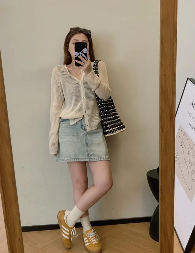 不管是夏天,還是早秋,這麼一件薄款的針織小開衫都合適,小短款的長度,專屬於小個子女生的,因爲有些薄透,所以記得在裏面增加一件小背心,這樣纔不至於太暴露了,搭配起牛仔半身短裙,減齡又不失青春感。