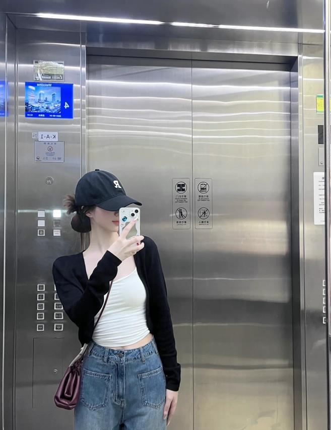 很經典百搭的黑色針織小開衫,這種基礎款式,怎麼搭配都是沒有關係的,也不容易出錯,內搭一件白色小吊帶,黑白配,也太耐看了。下身再配一條牛仔直筒褲,上短下長的組合,實在是可以很好優化整個身材比例,利用起一頂棒球帽來點綴,青春又充滿活力氣息。