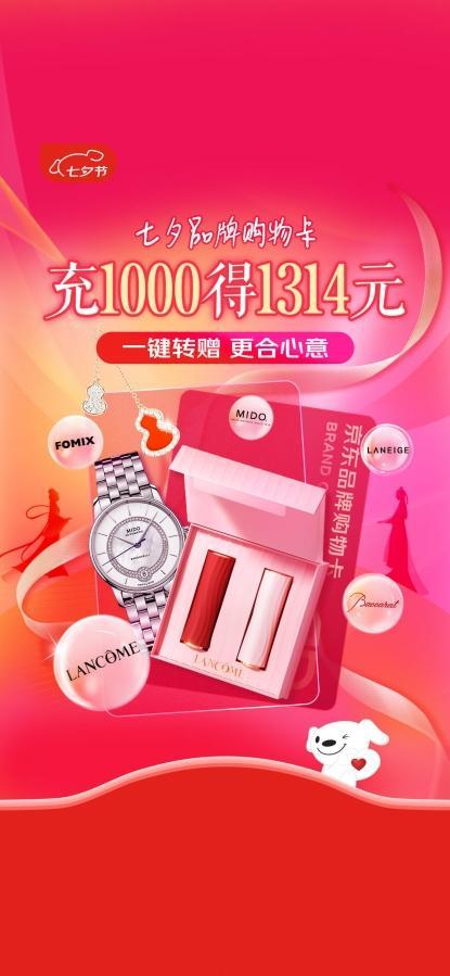蘭蔻、YSL、阿瑪尼首次加入!京東七夕品牌購物卡充1000得1314