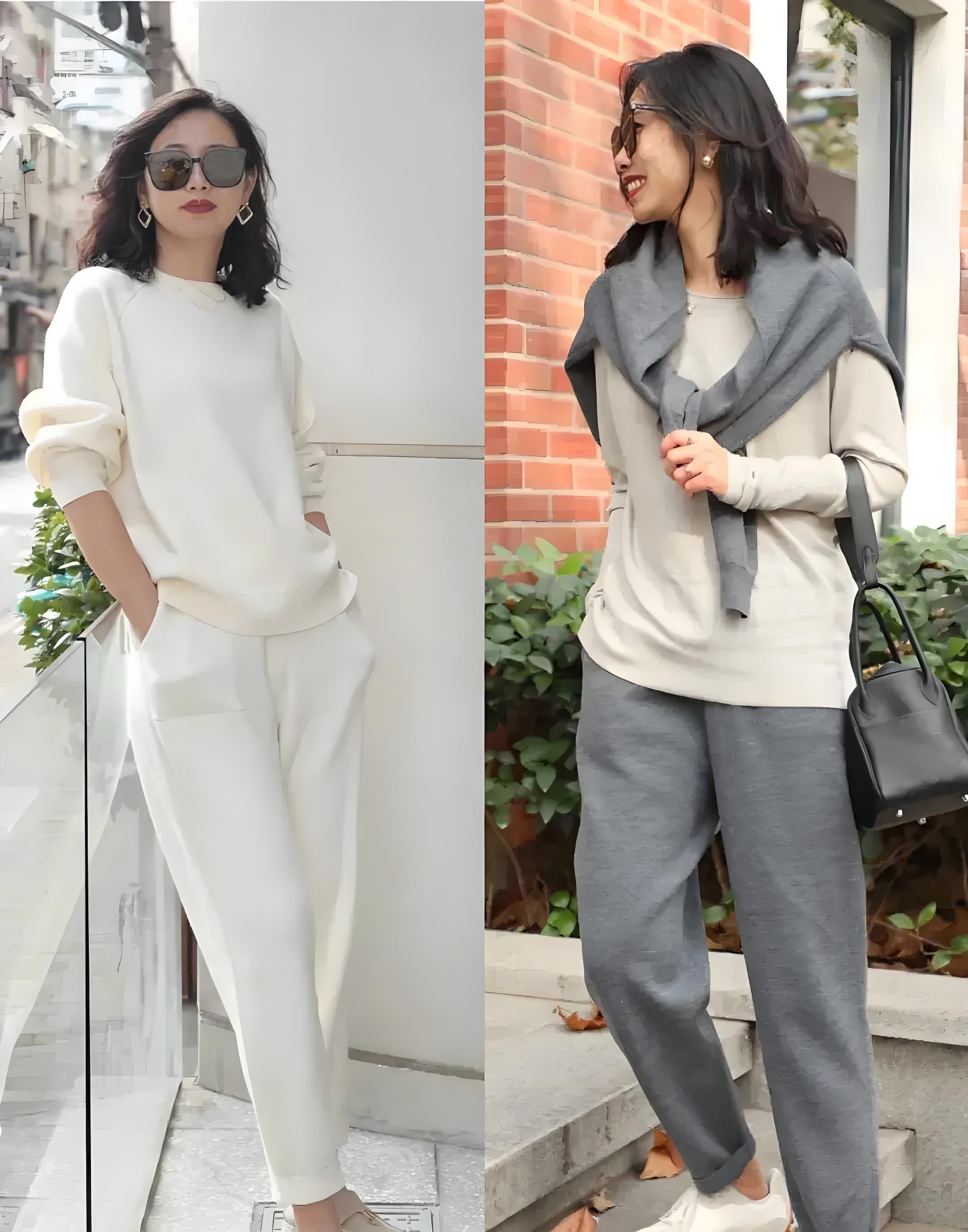 輕薄針織衫的疊搭,配長褲更顯腿長