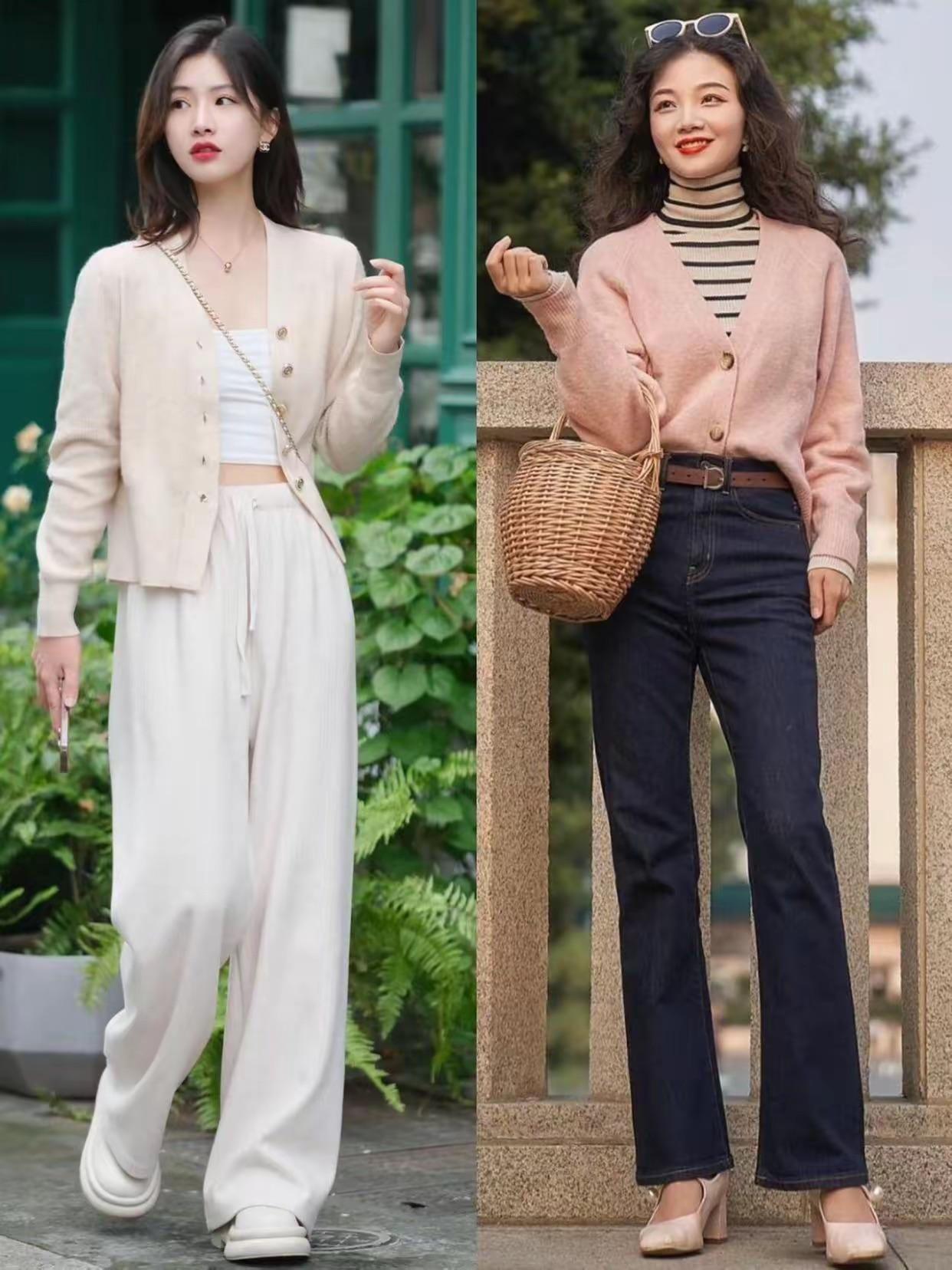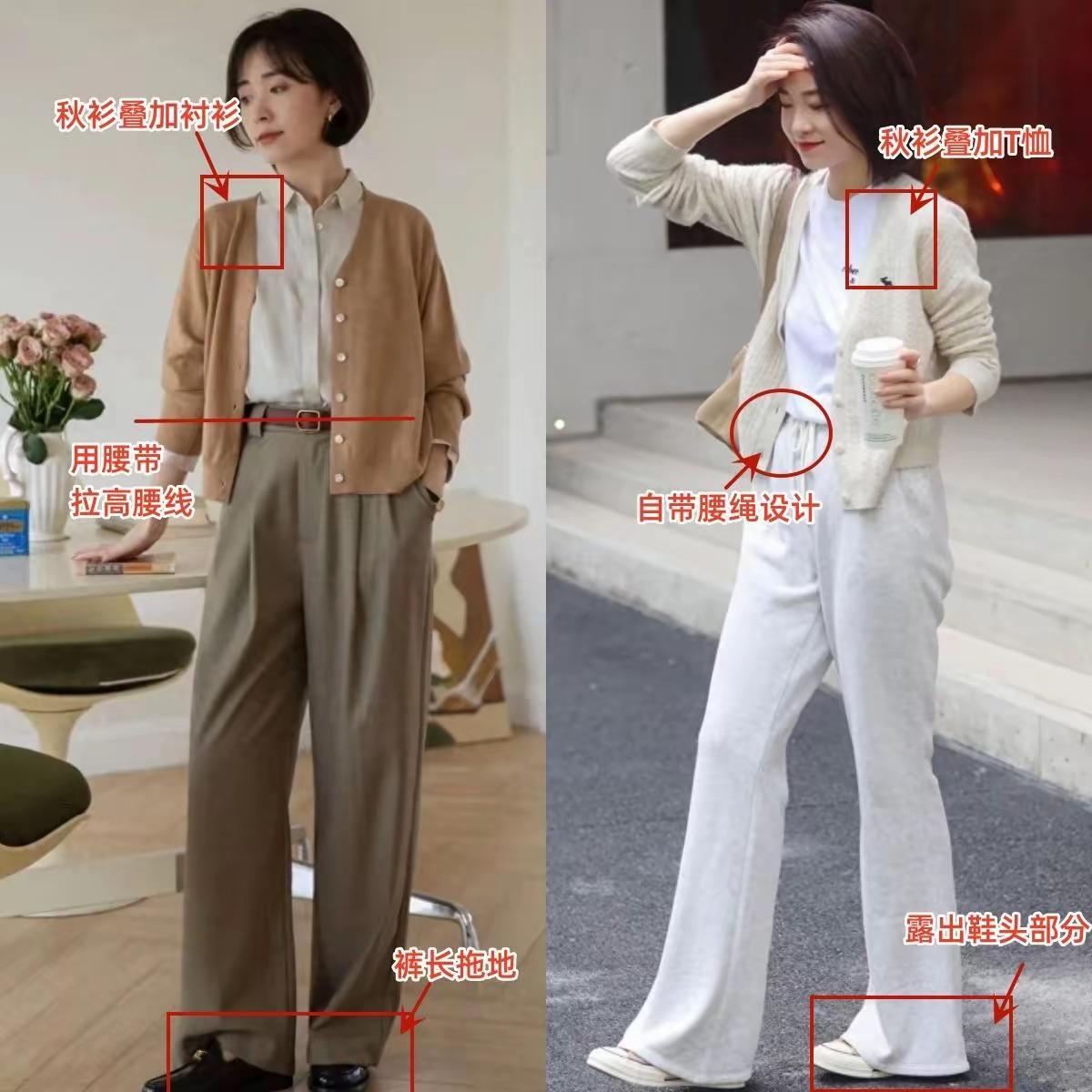 看似簡單低調的針織開衫,還是要配高腰的長褲才自在。比如短款的針織衫,可以疊搭襯衫、或者T恤,配上高腰長褲顯得雙腿修長。