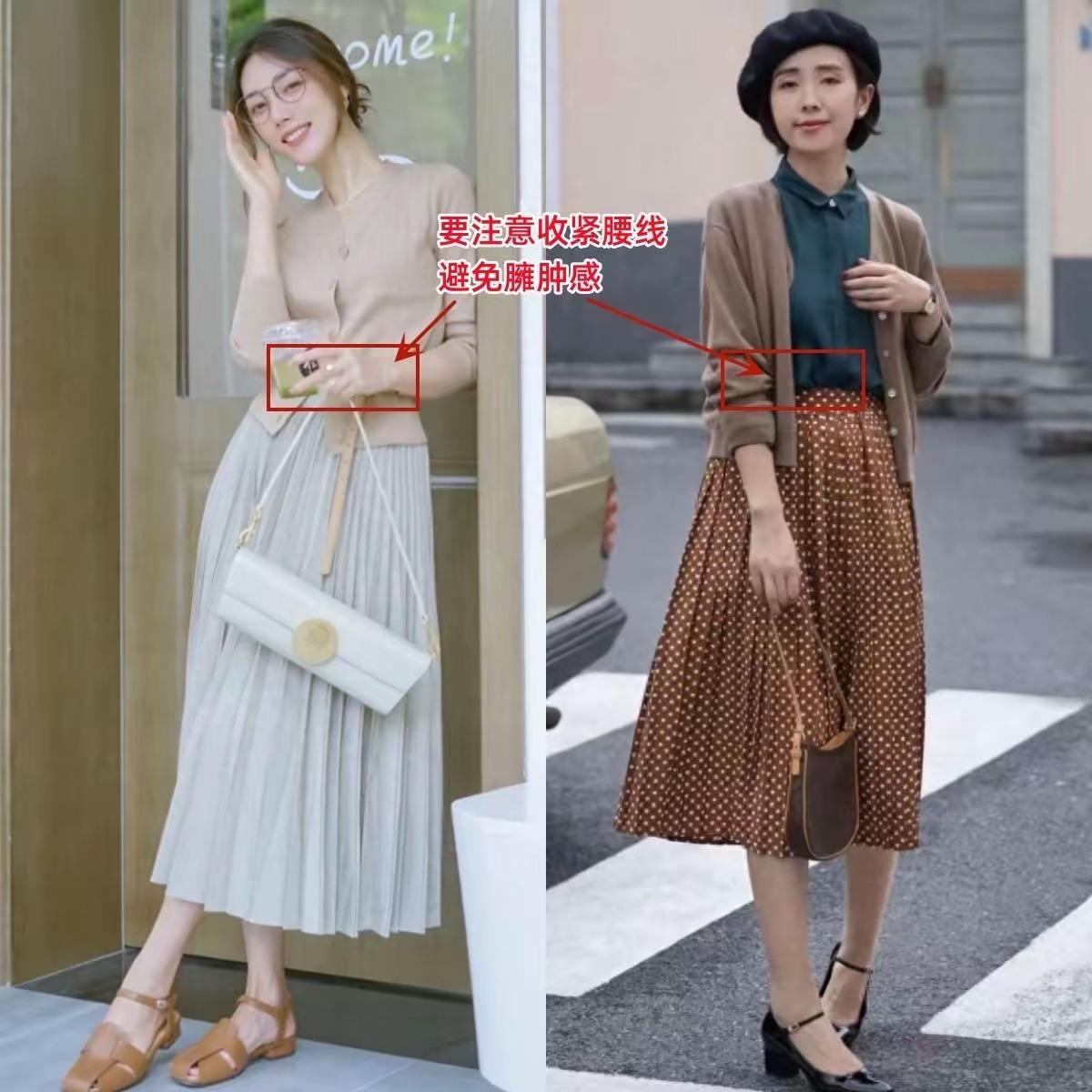 穿着針織衫配半身裙,注意收緊腰線避免臃腫感