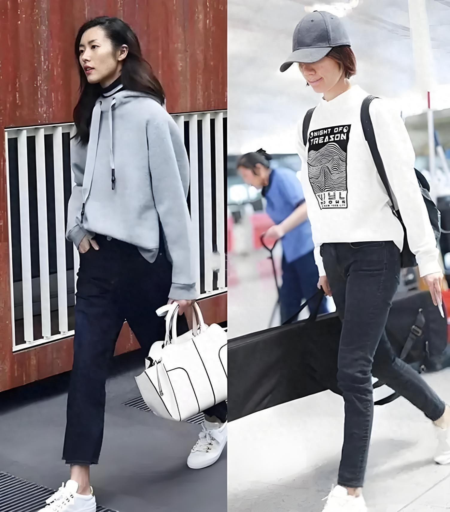 複雜的印花,增加了衛衣的土味情懷,連帽款式的衛衣、雖然很減齡,卻也會顯得有扮嫩的嫌疑,所以中年女性穿衛衣,踩雷概率很高。