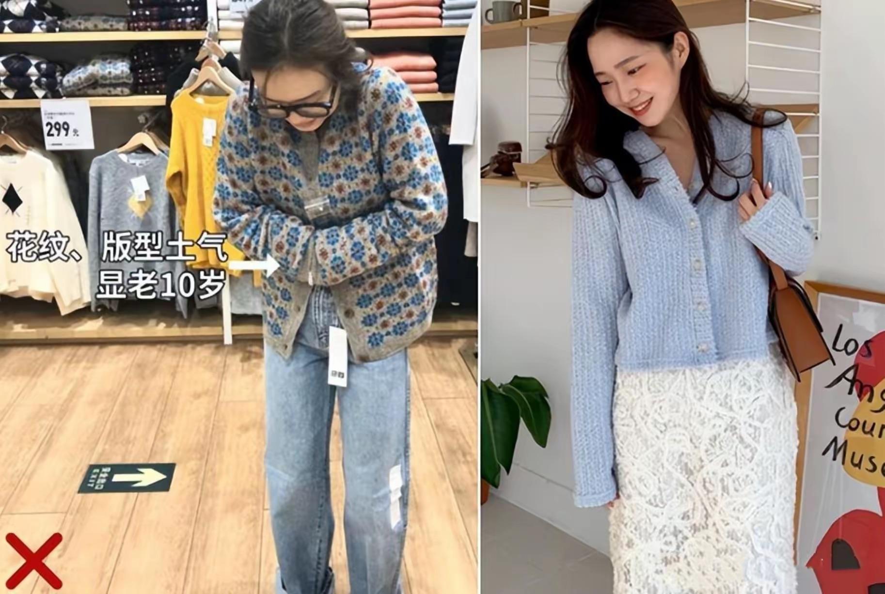 如果選擇了花紋土氣、版型老氣的針織衫,穿上身就會更顯老。尤其是大齡女性,更應該避開這種老氣感的針織衫。