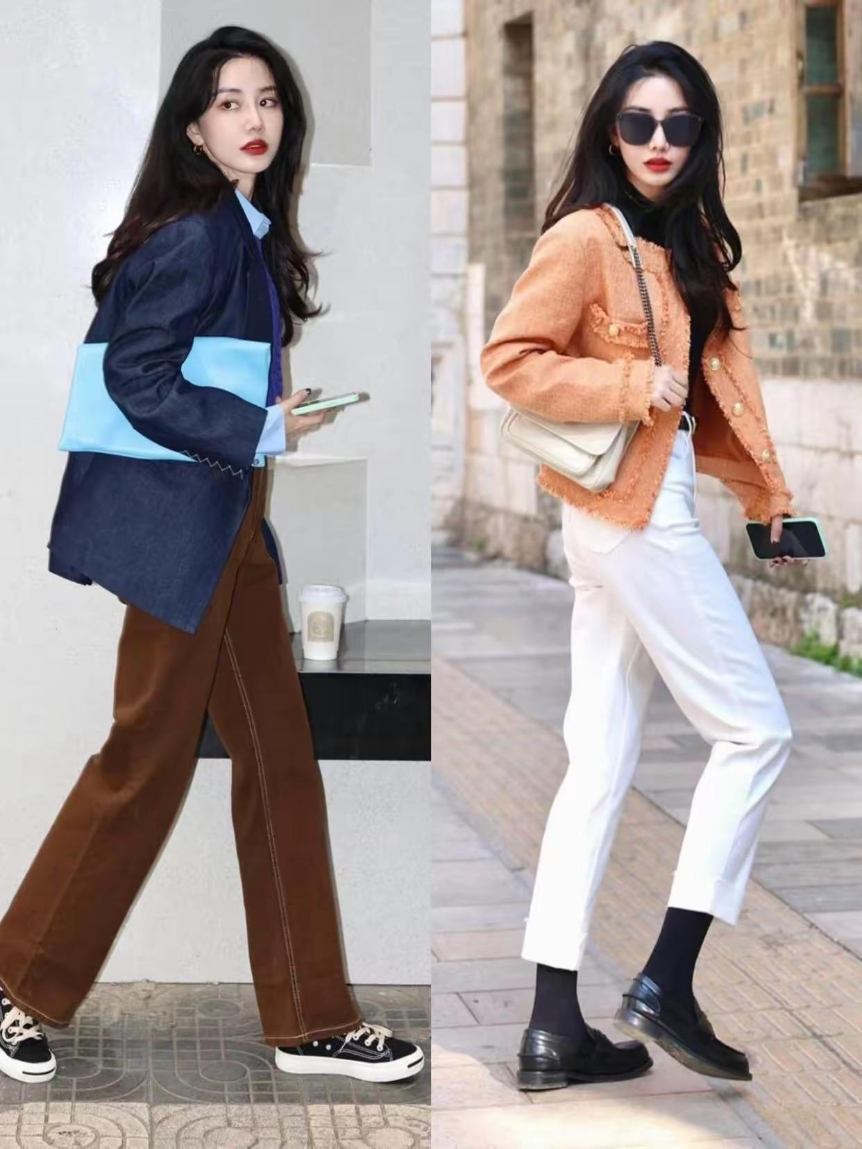 想要穿得更加洋氣顯高,我們可以多注重版型面料的剪裁。比如小香風外套、直筒的牛仔褲、A字形的半身裙,上身都利落顯高。