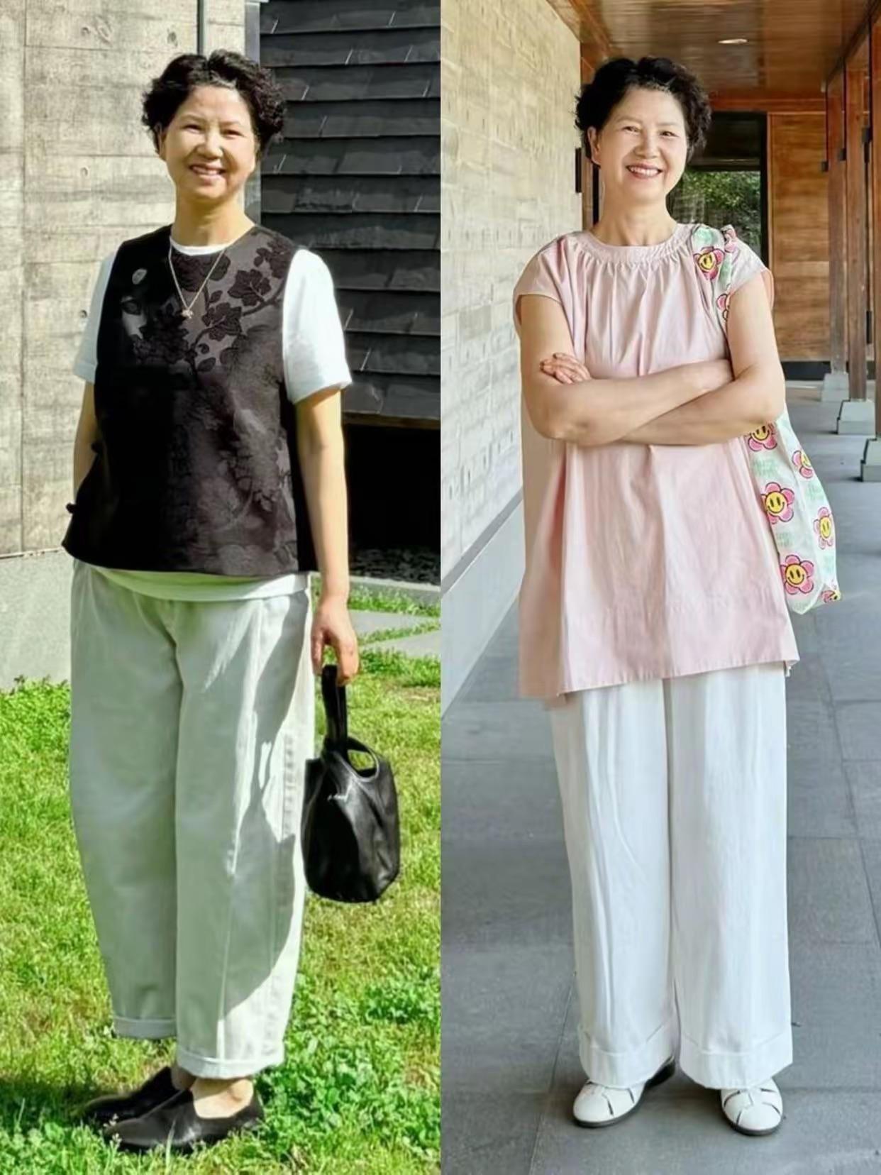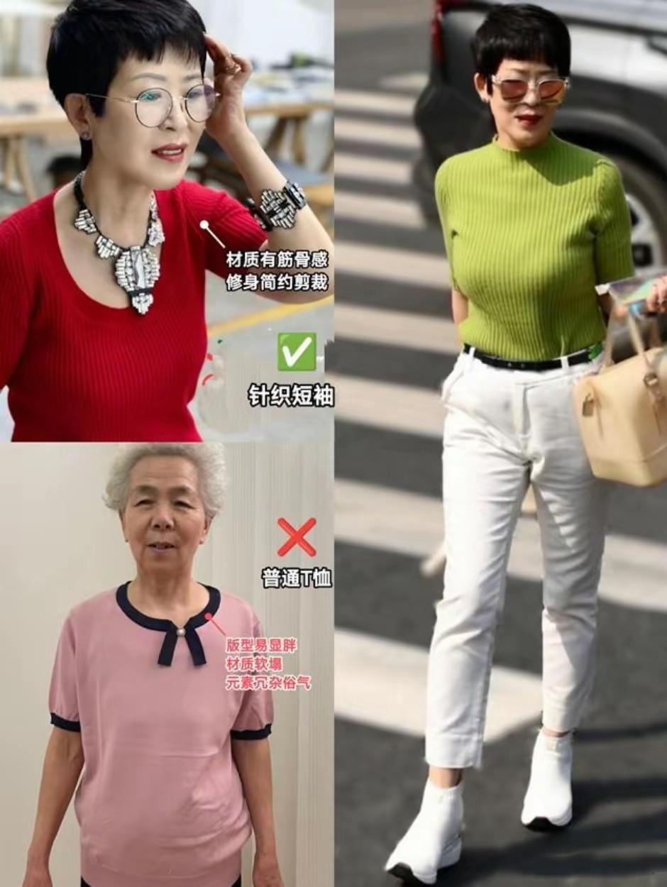 T恤、奶奶衫,作爲夏日必備單品,也豐富了我們的衣櫥。只是這種年齡感不強、偏向休閒風格的上衣,對大齡阿姨並不友好。