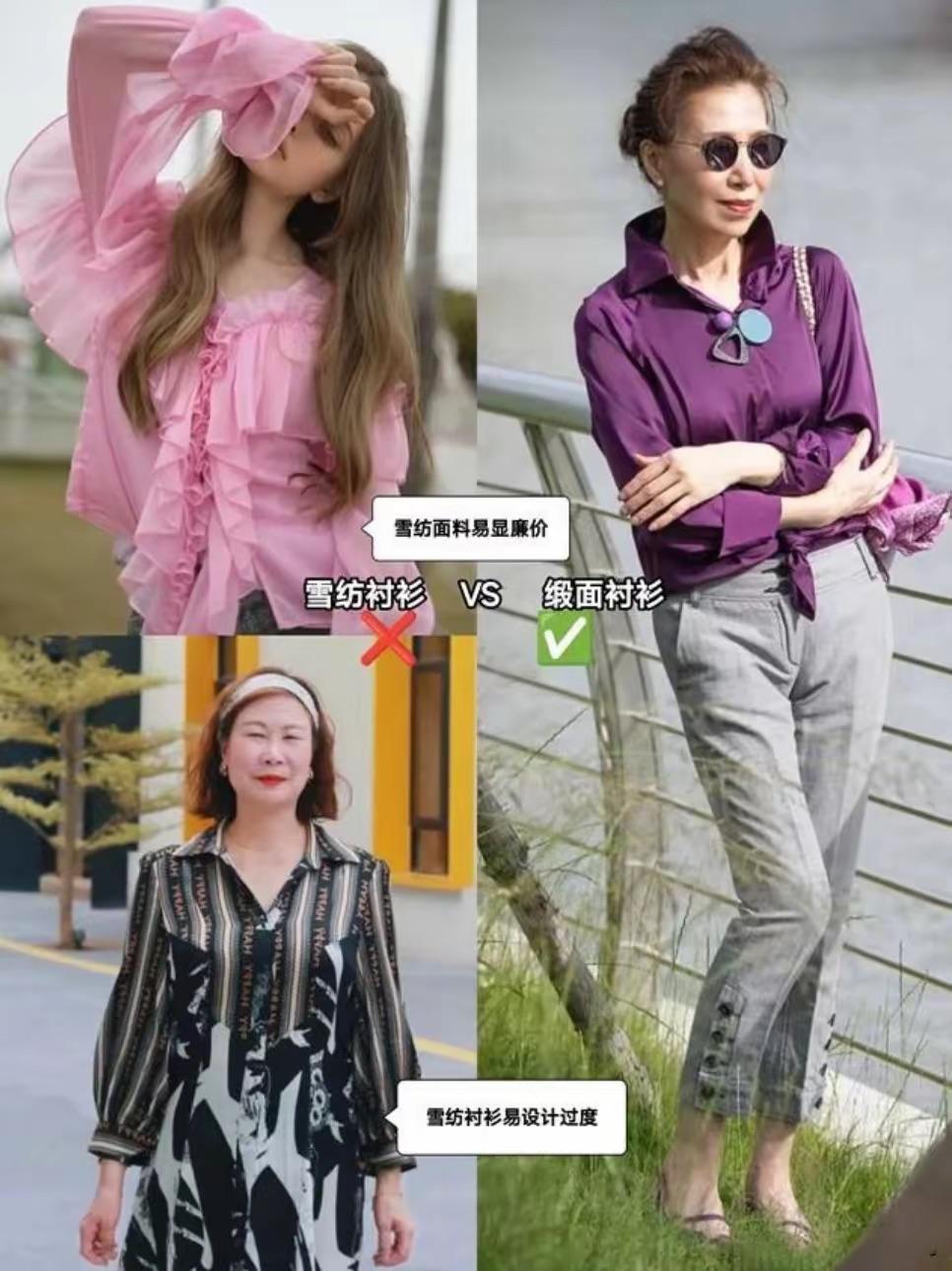 年齡越大,越是要學會避開廉價服裝。太廉價的蕾絲、或者太軟塌的服裝面料、以及多種減齡元素的羅列,總是會顯得很掉價。