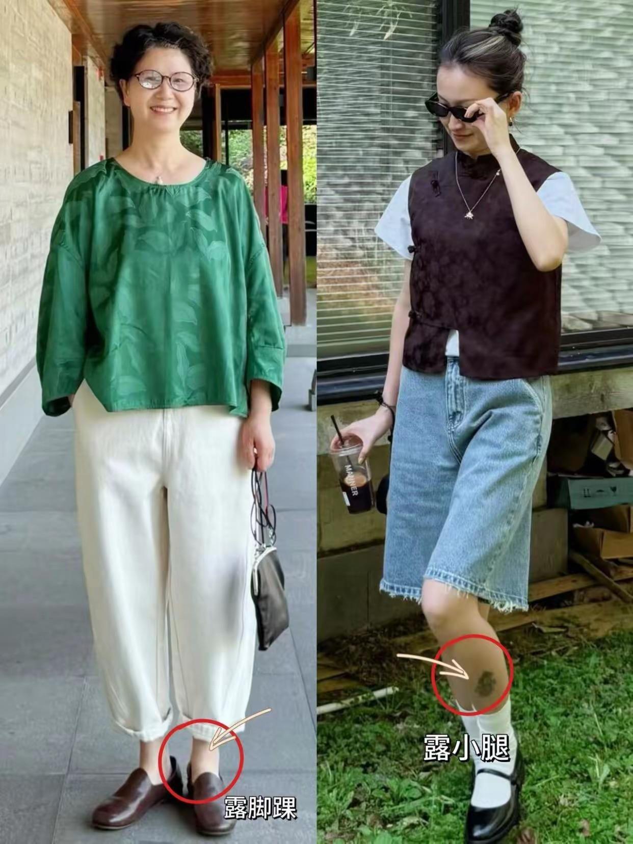時髦阿姨都會巧妙的留白,可以露腳踝、也可以露小腿,看似清爽且簡潔的穿搭,讓視覺更輕盈,也更時髦減齡。