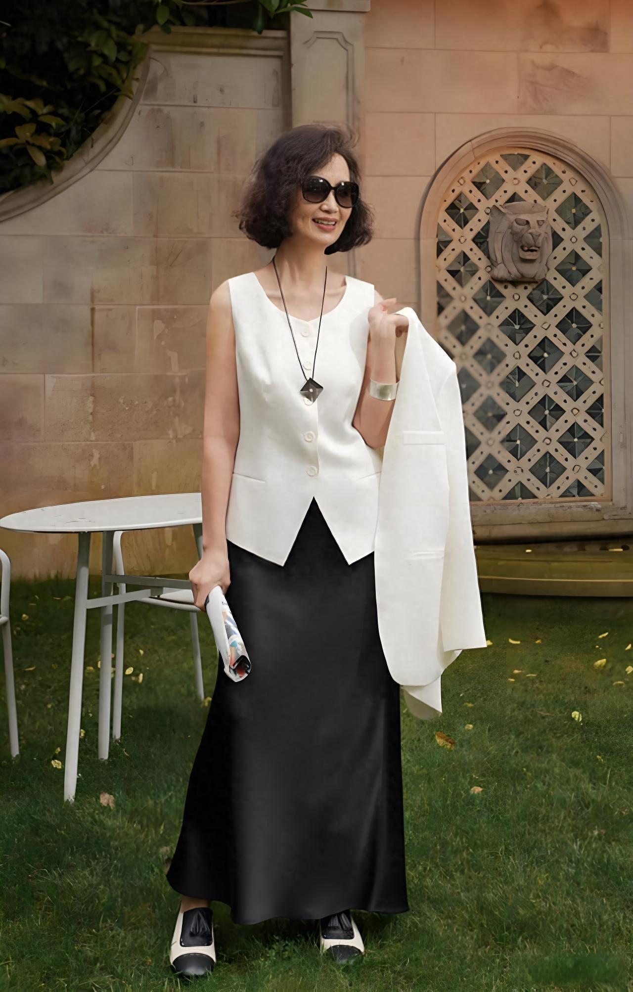 要麼就是會穿出過分暴露的感覺,50歲以上的大齡女性們,在穿衣搭配上露膚的面積最好不能超過整體造型上的四分之一,露膚的位置最好集中在肩頸或者是腳踝上,比較好控制露膚的度。