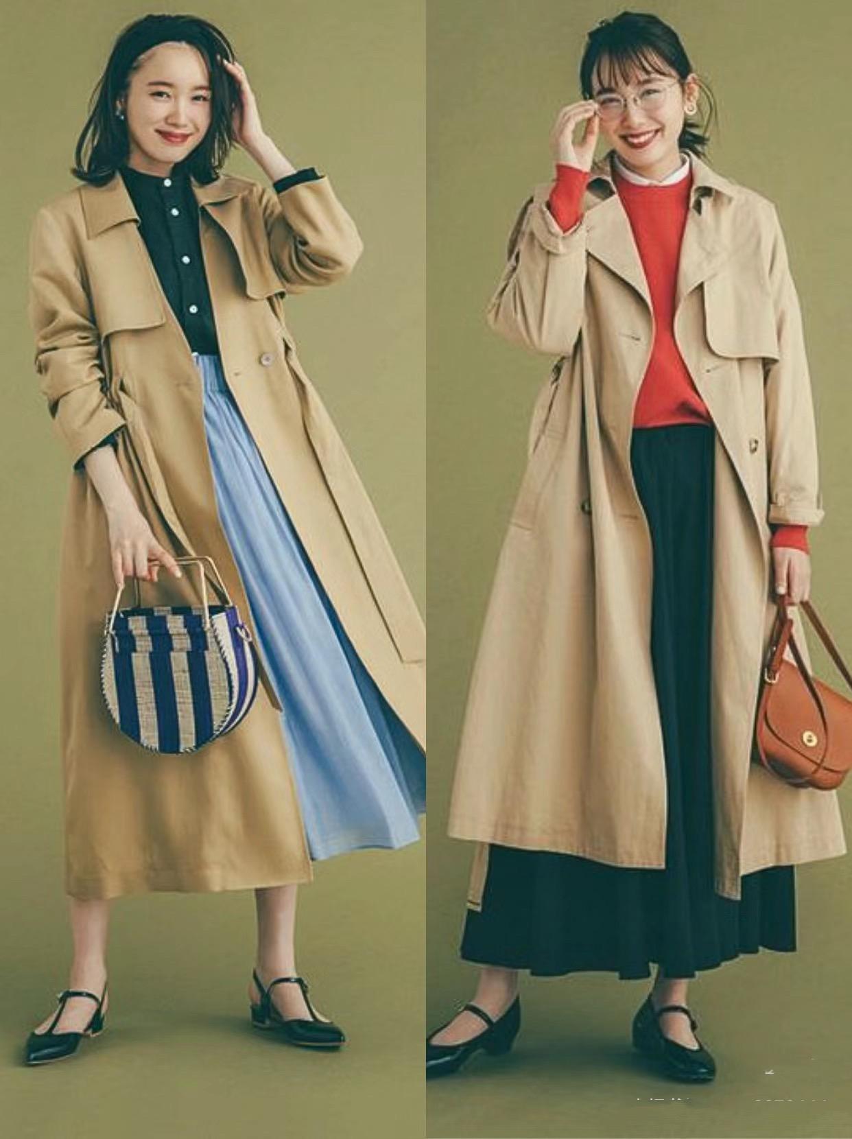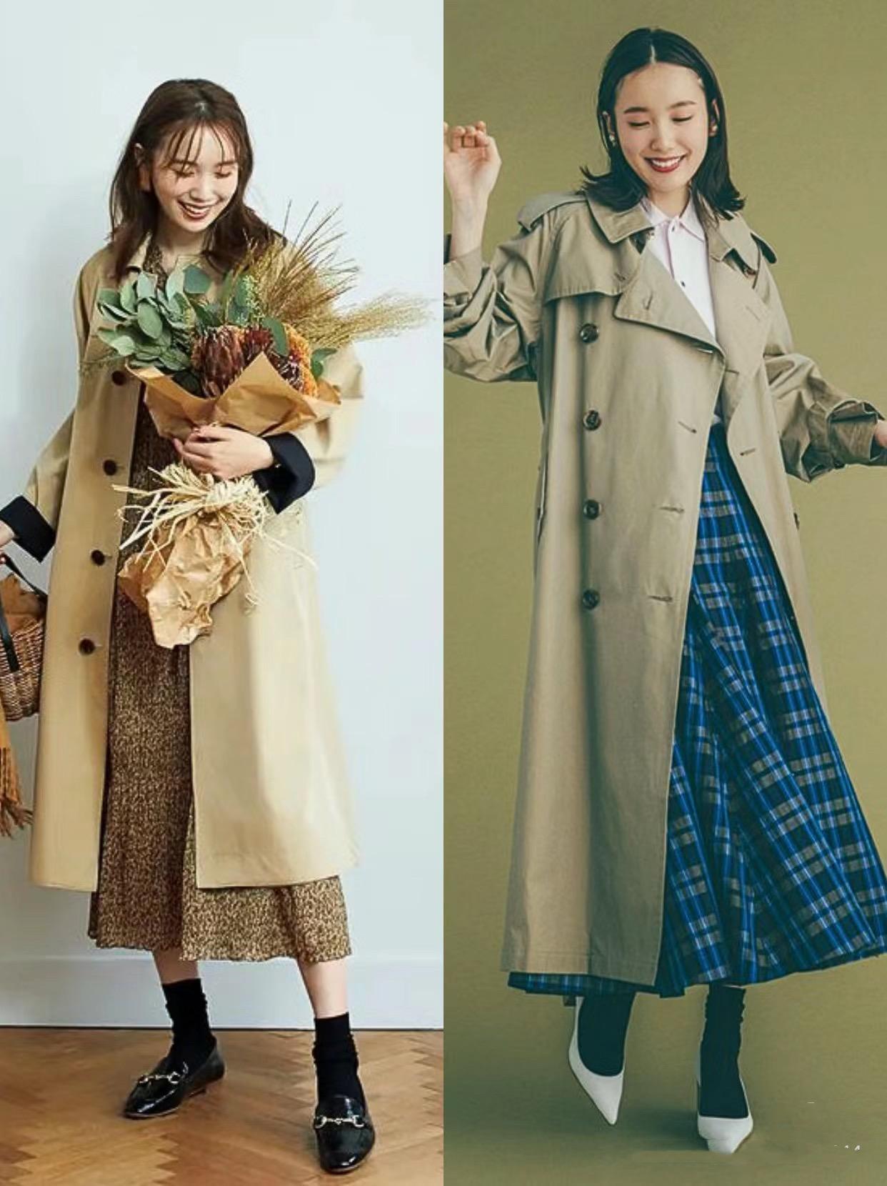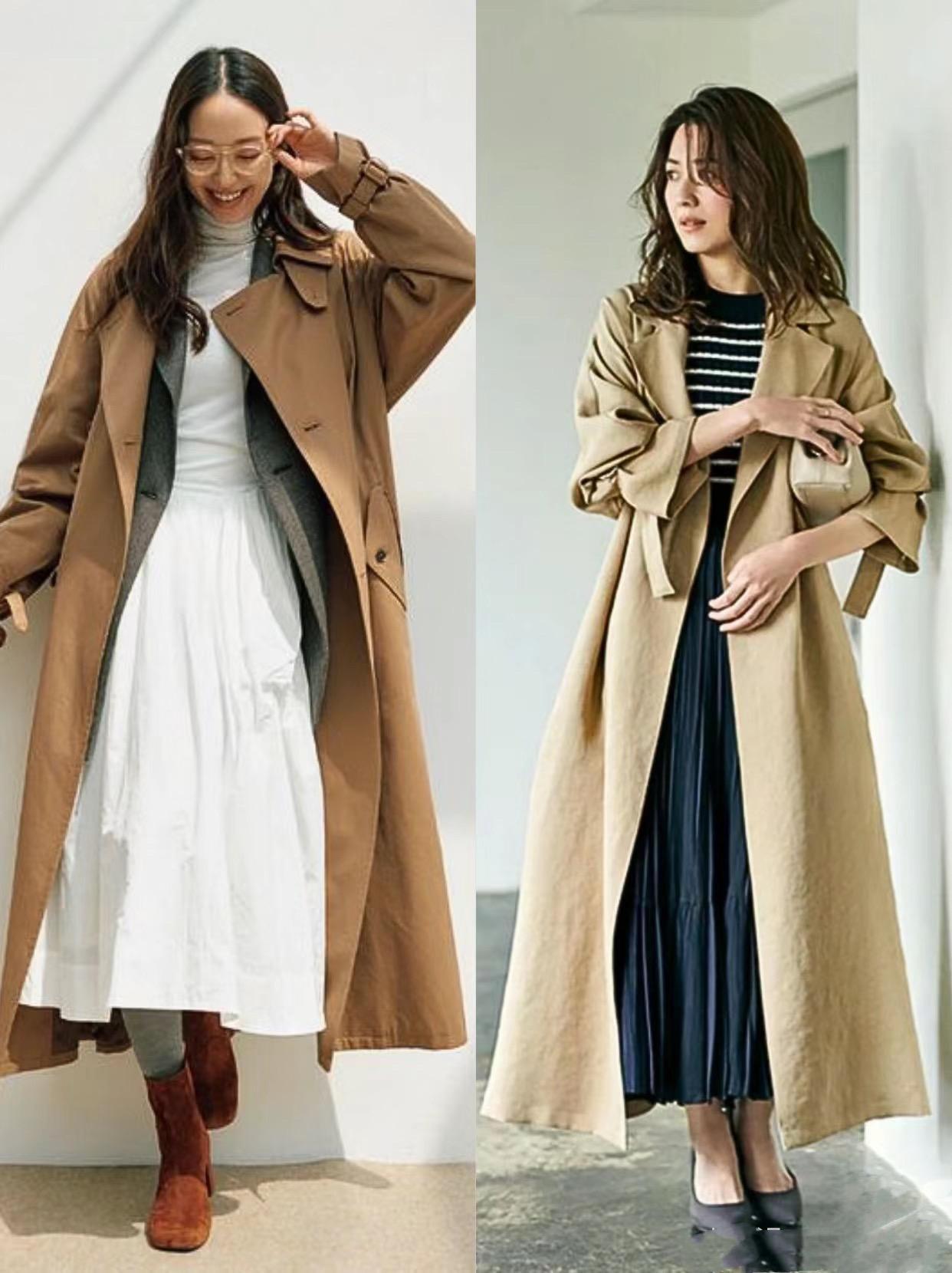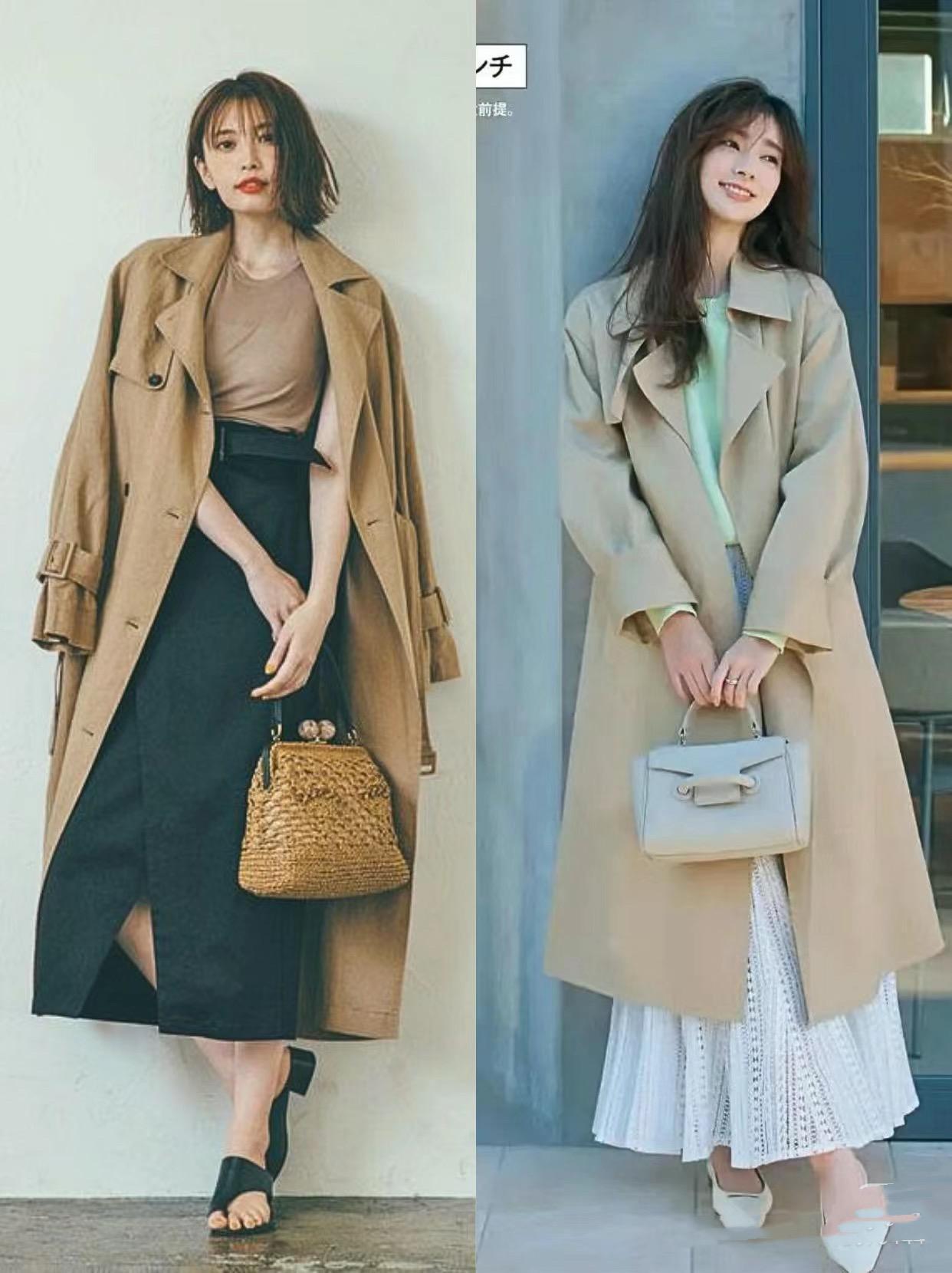 卡其色風衣,讓我們的穿搭更從容,配百褶的半身裙,浪漫風情不言而喻。