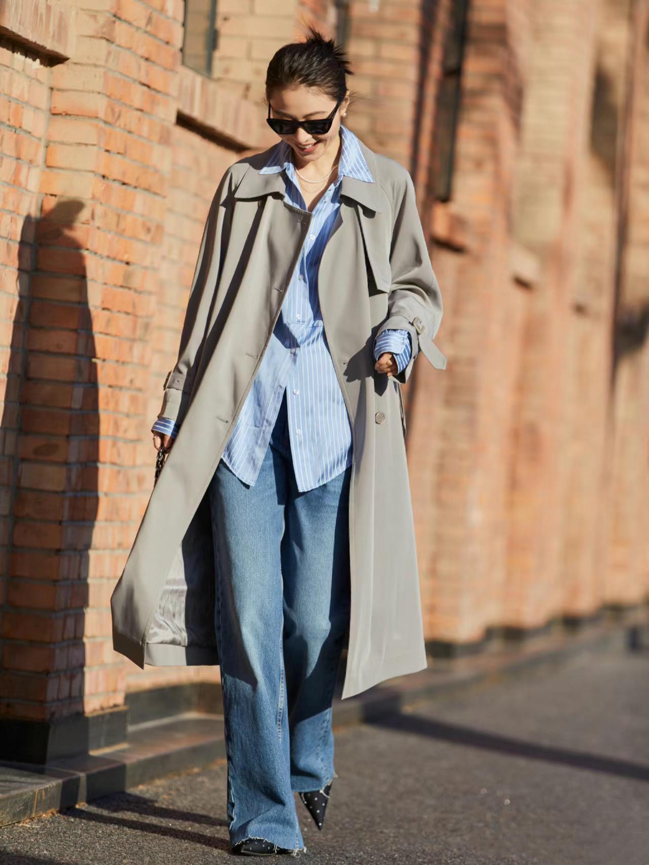 淺灰色的風衣,區別於卡其色和大地色,屬於經典耐看的高級色。