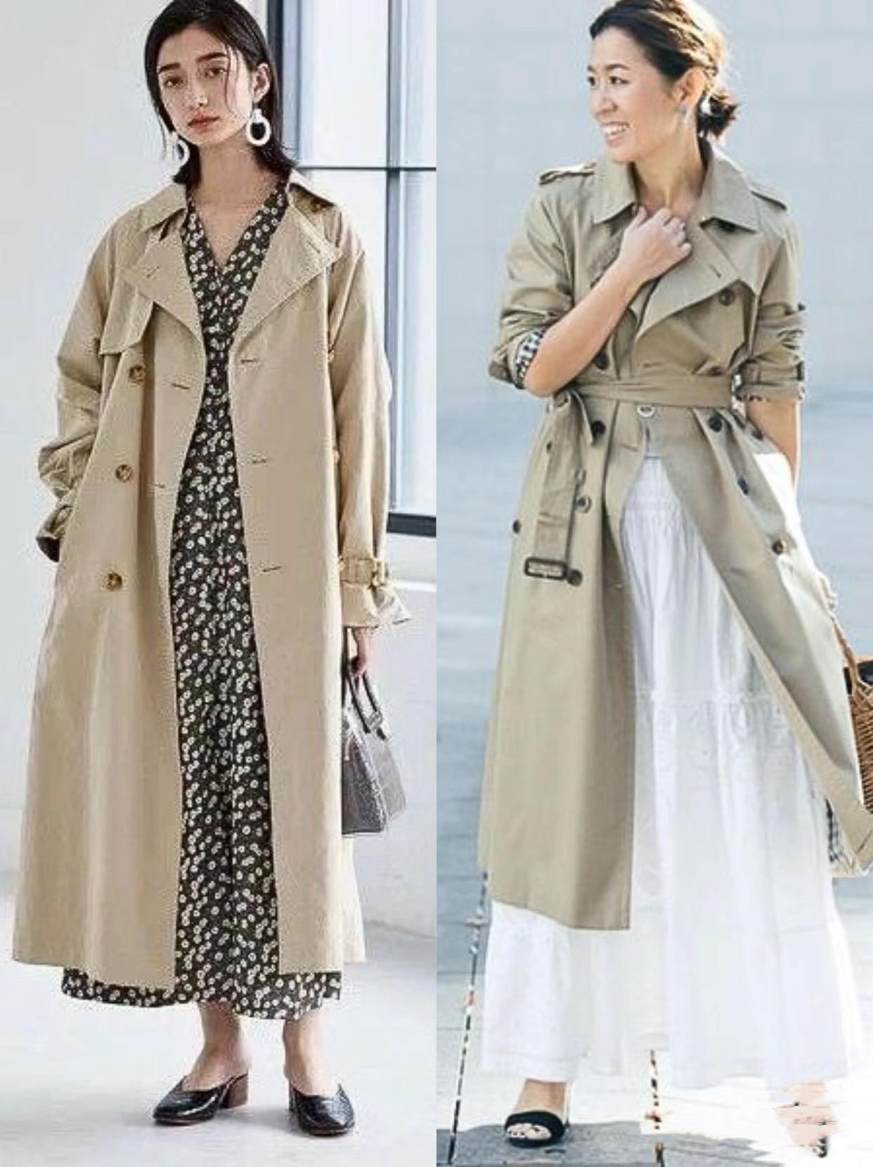 寬鬆的卡其色風衣,會帶來更舒適自信的美。像這種寬鬆風衣,可以配條紋襯衫裙,醒目又高級的搭配、也是很惹眼。