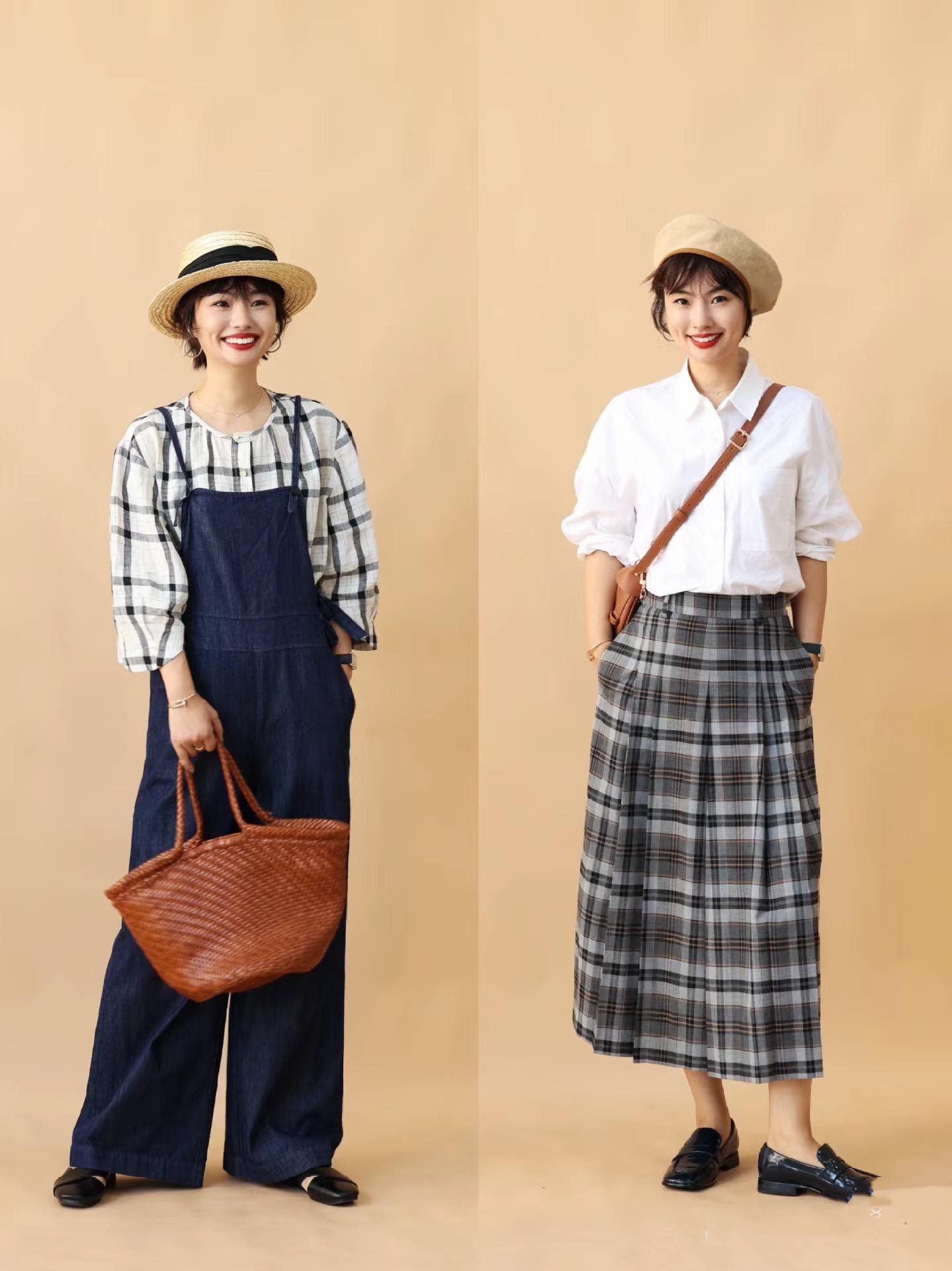 風格感十足的格子襯衫,也可以配高腰的直筒褲,內搭白襯衫,清爽文藝。戴一頂草編帽,果然是顯得臉超小。