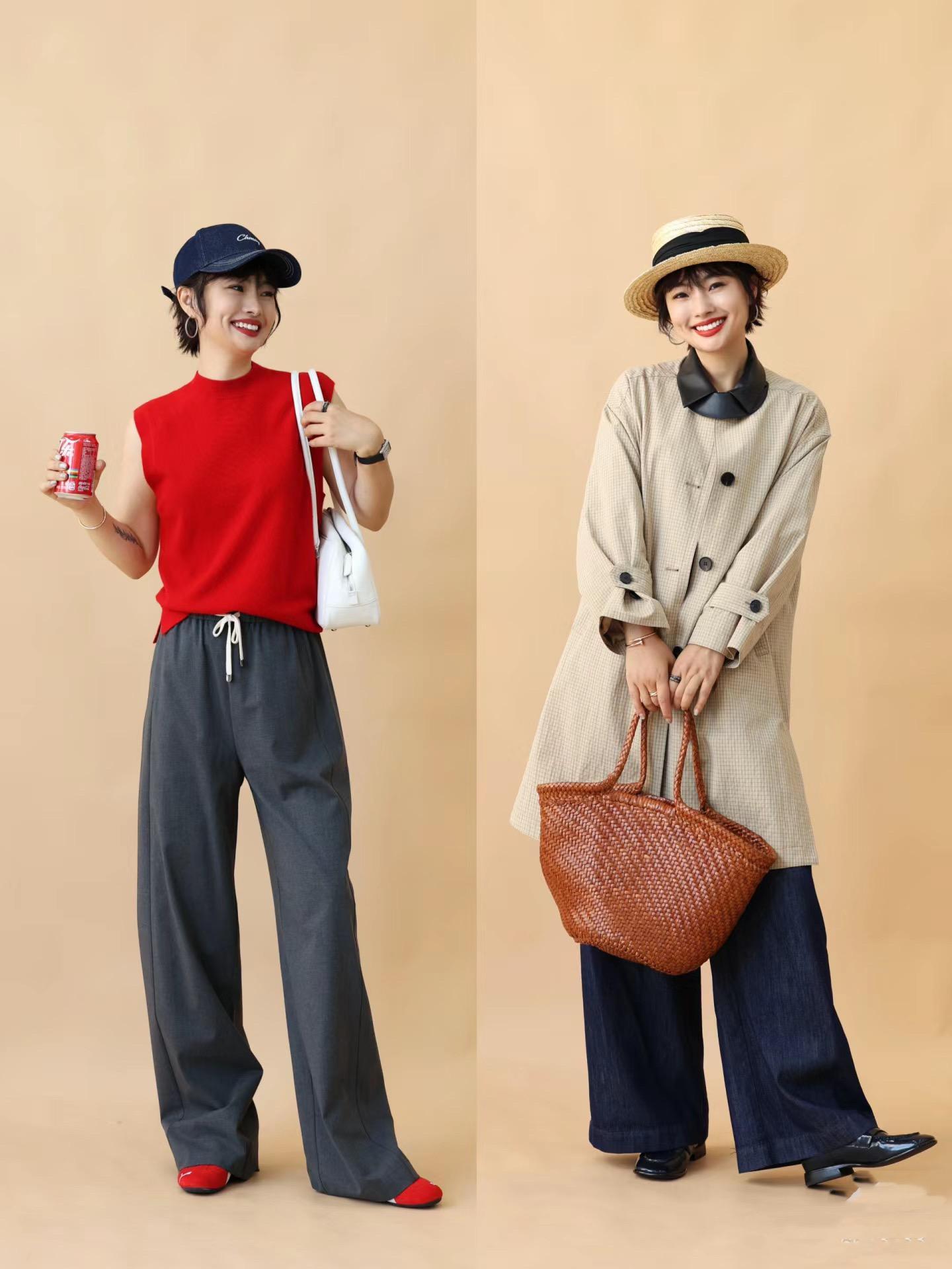 高腰的直筒褲、或者H型的風衣,在這個秋天都是穿着率更高的單品。無袖的背心,配上高腰的直筒褲,清爽醒目、時髦又亮眼。