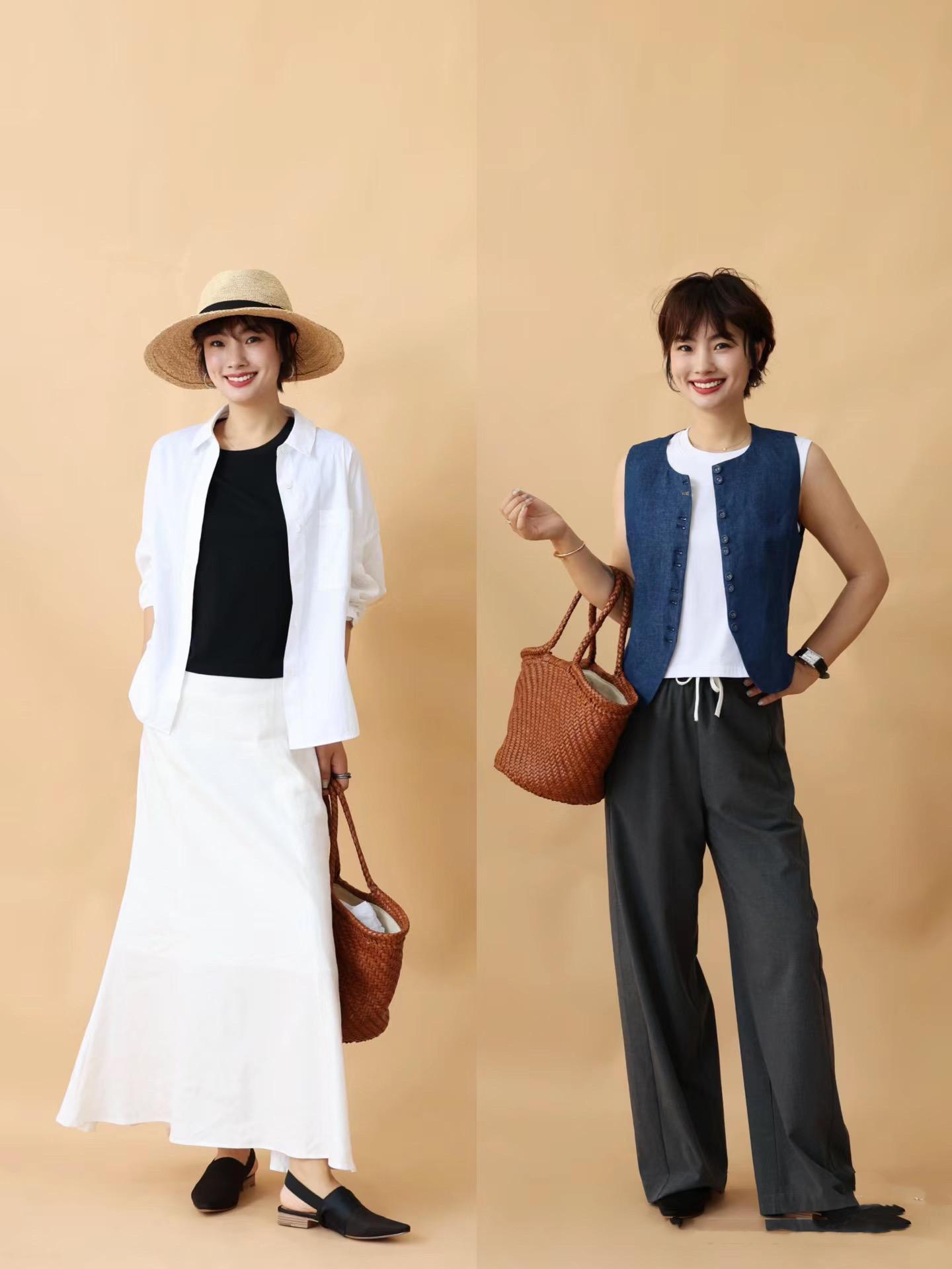 比如修身的小馬甲、精緻的紐扣裝飾,以及簡約穿搭中的平頂草編帽。平頂的草編帽,爲穿搭注入靈魂,可以優雅、洋氣、也可以很顯貴。