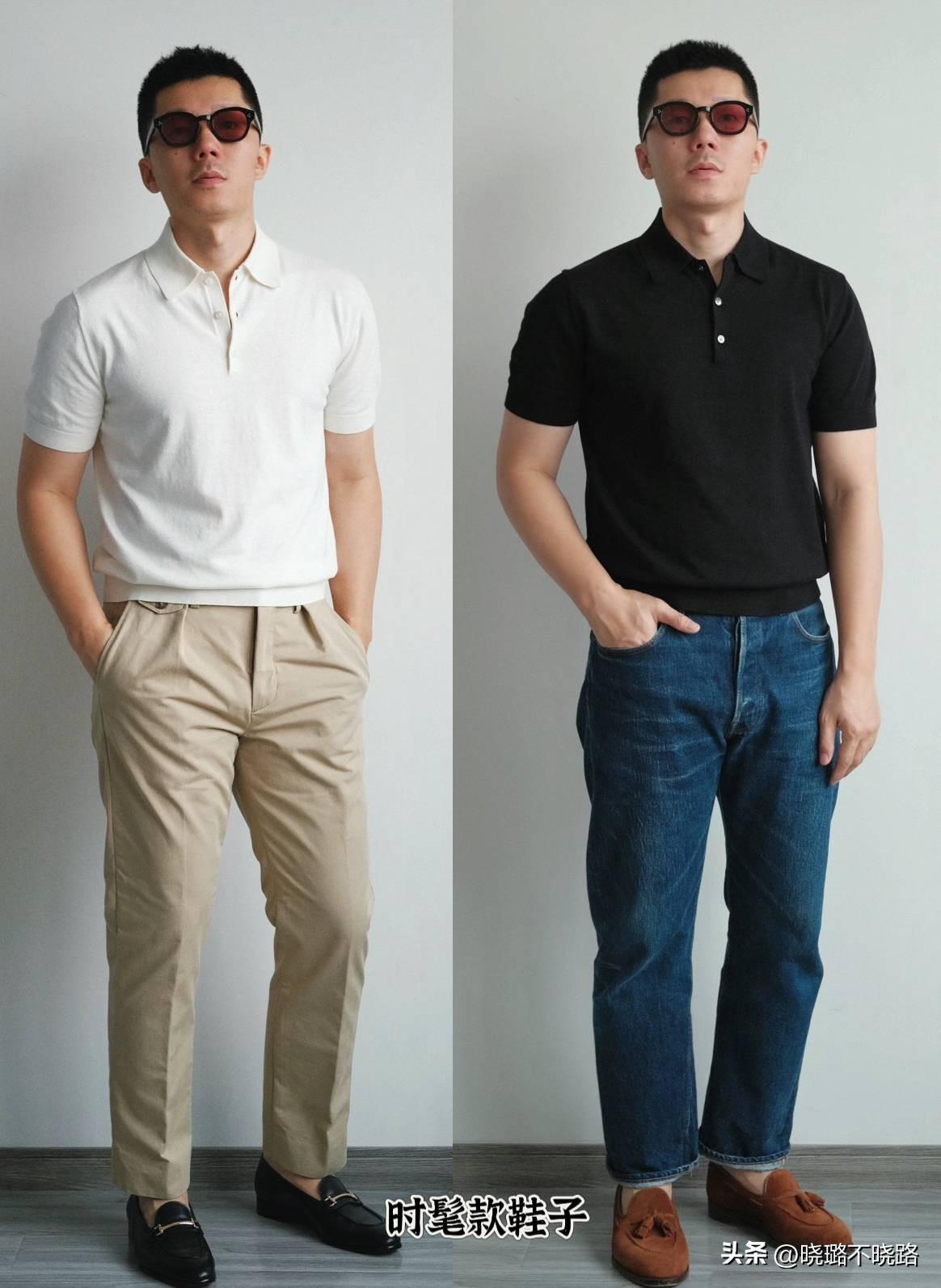 POLO衫比T恤更加正式,又比西裝更休閒化一些,恰到好處的分寸感,能夠輕鬆削弱老土俗氣的效果。而且,衣襬收緊的設計,可以讓我們徹底摒棄“塞褲腰”的方式。
