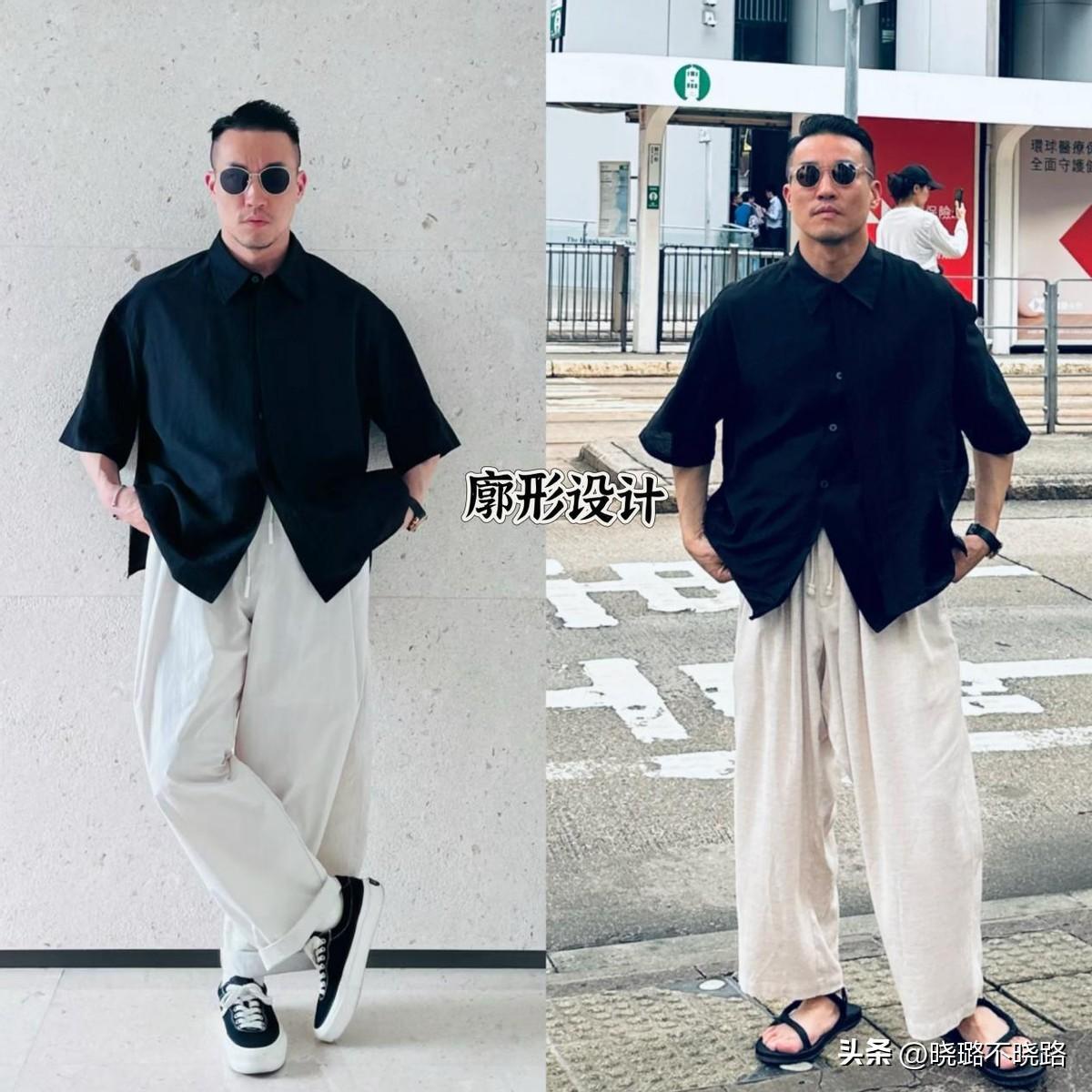 黑色是顯瘦的“主打色”,在視覺上能夠收縮輪廓,所以就算是用於廓形襯衫當中,也不會有顯胖的現象,搭配對比色的長褲,還能豐富造型。