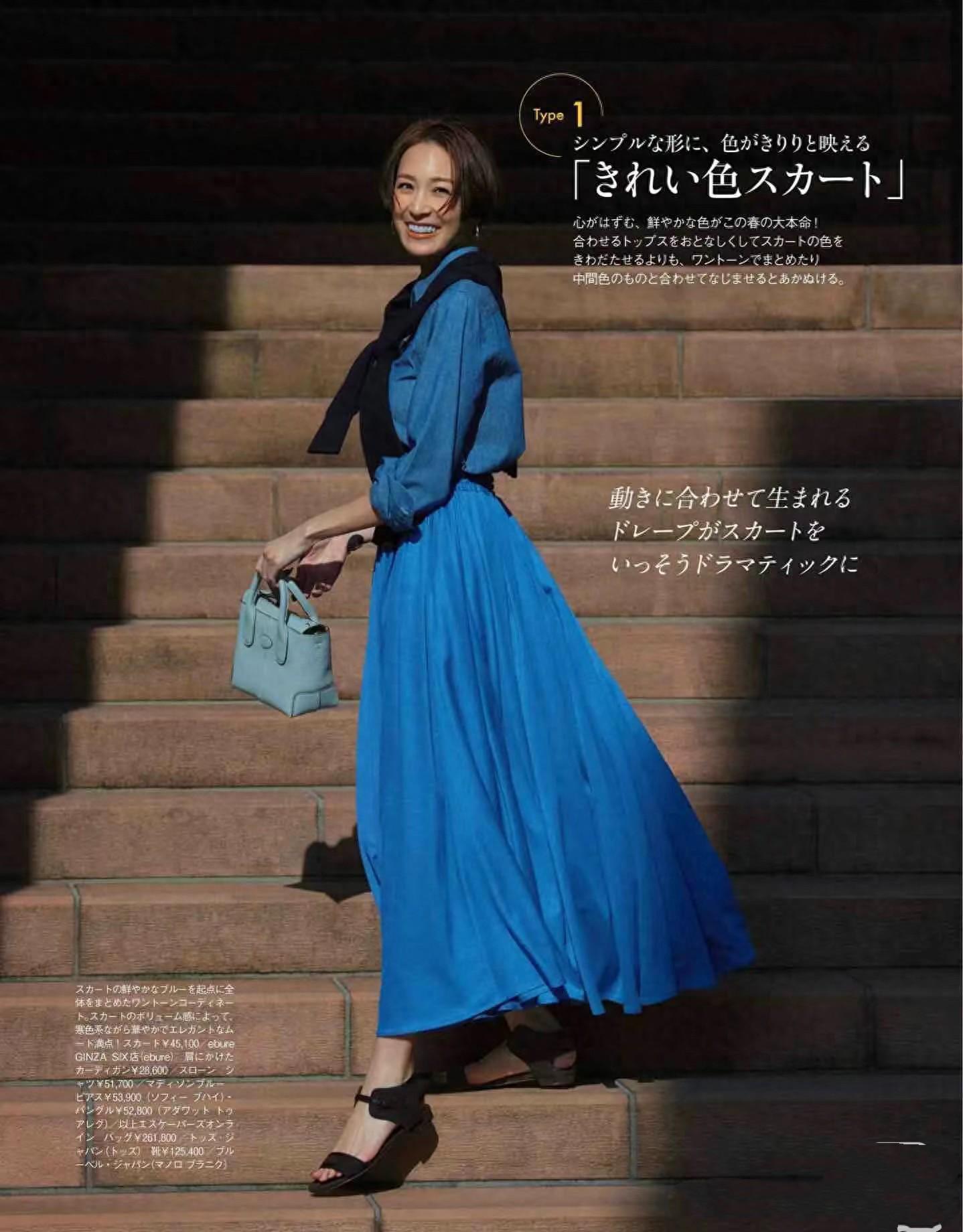 蠟筆藍的長裙,明媚又張揚。初秋裏配同色系的牛仔襯衫,就滿足了日常需求。上班、約會、休閒,總是恰到好處的放鬆。