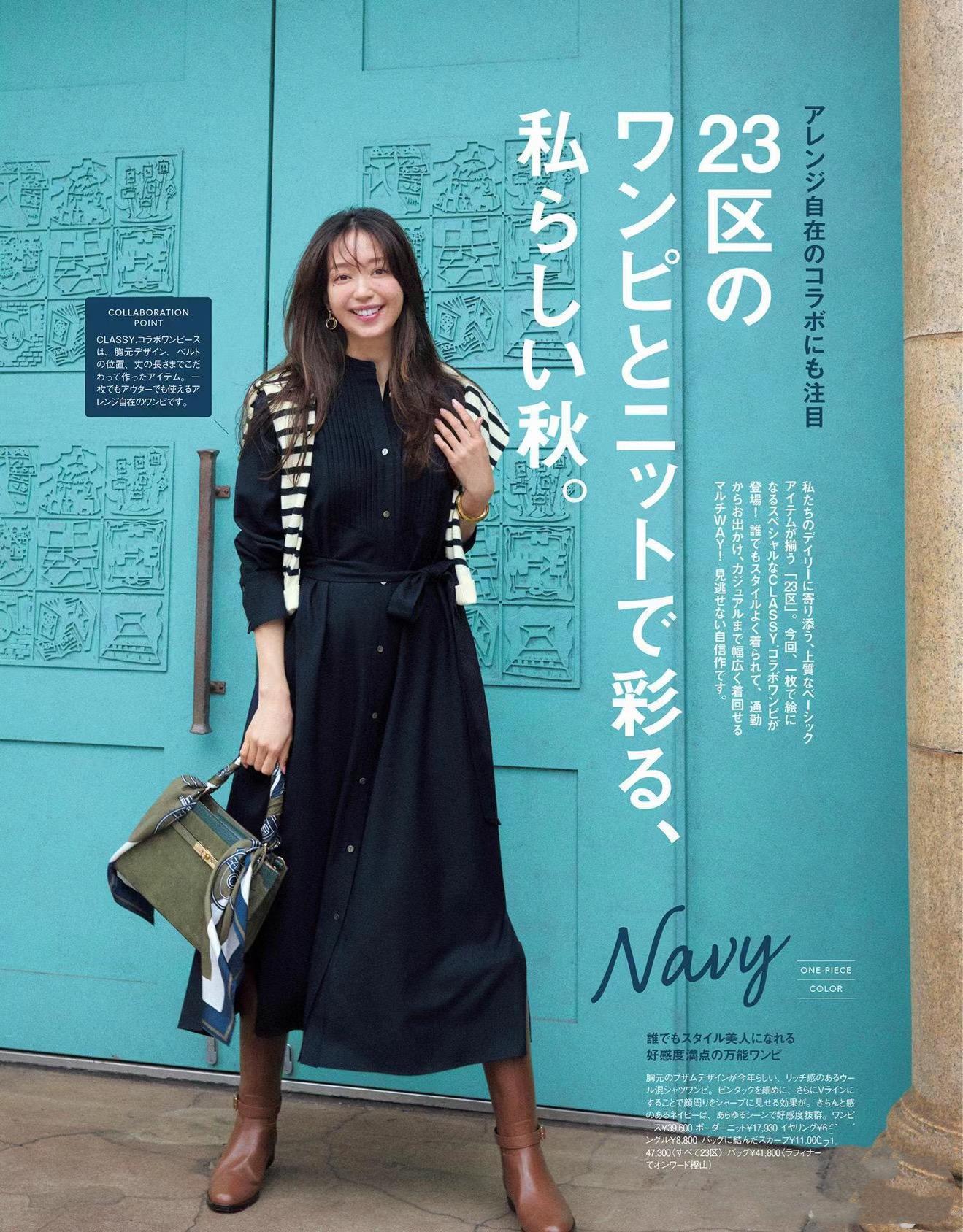 時髦且耐看的襯衫裙,風格上的可塑性也很強。藏藍色襯衫裙,不像黑色一般沉悶,卻同樣的高級顯白。用藏藍色襯衫裙,配條紋披肩,豐富層次也弱化年齡。
