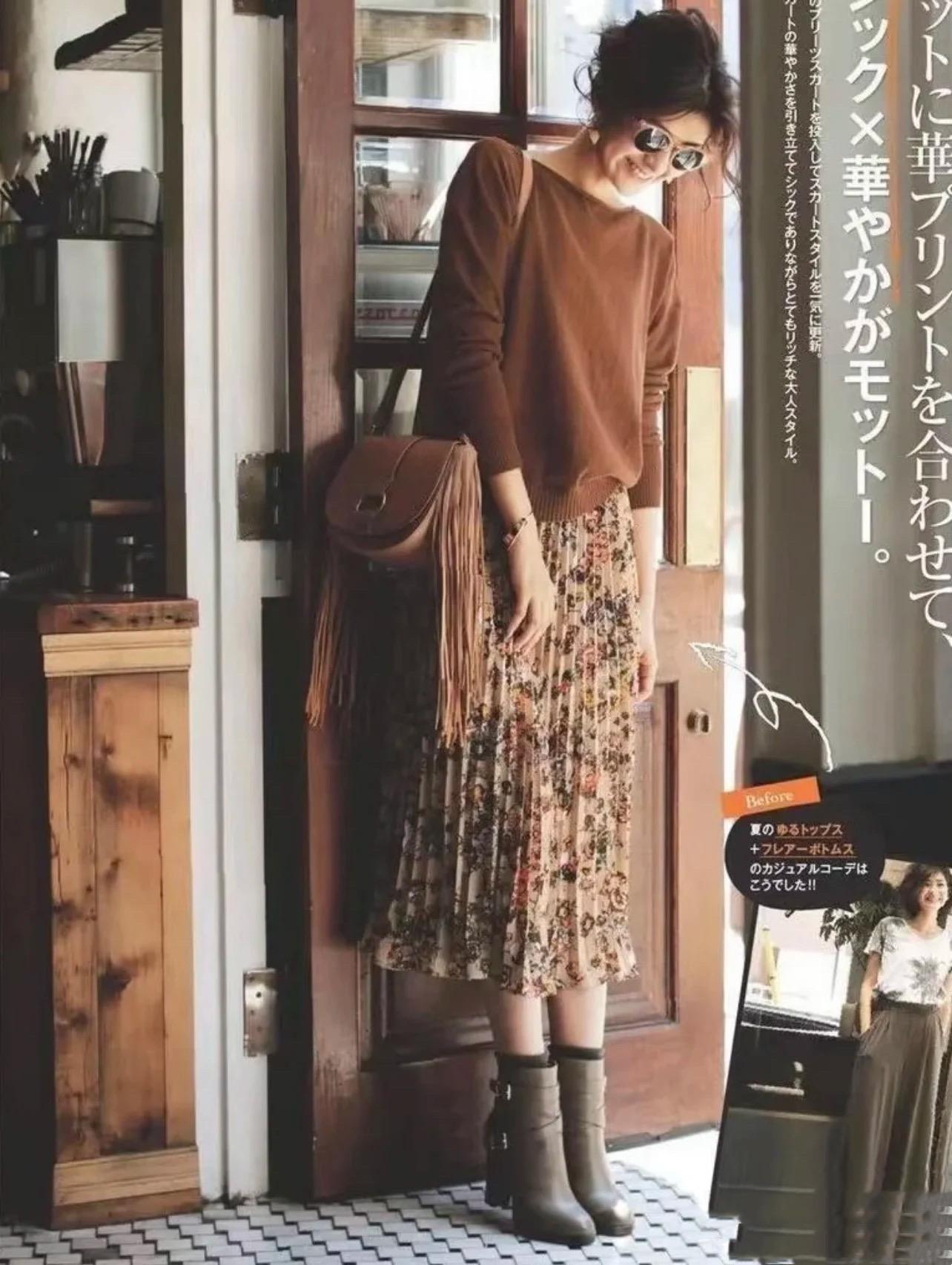想要更日常一點的穿搭,碎花的長裙就必不可少。隨着秋天來臨,天氣轉涼。我們用碎花長裙配寬鬆的針織開衫,纔是最溫柔減齡的。