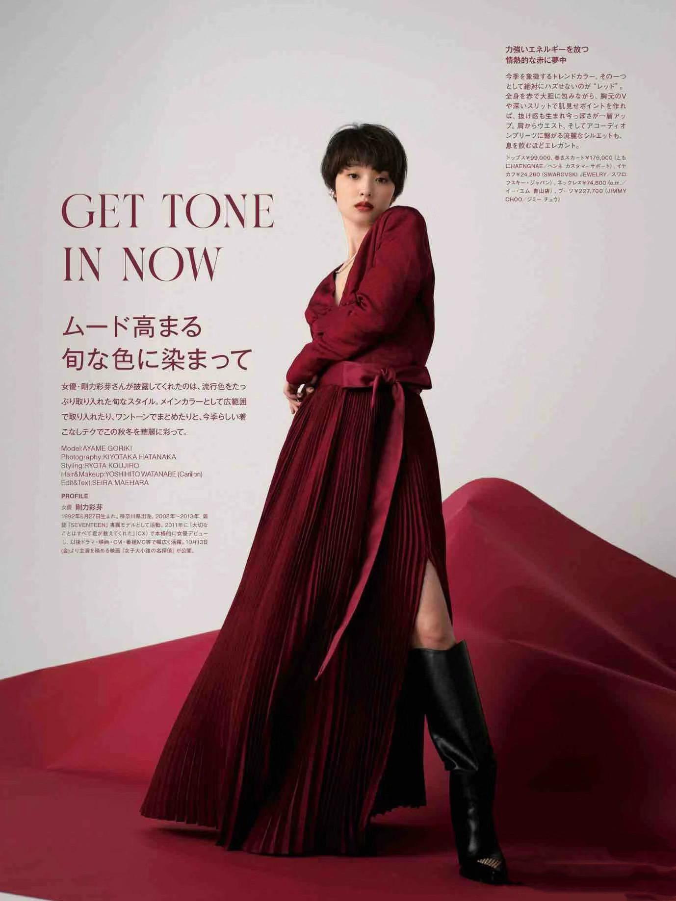 華麗貴氣的酒紅色長裙,顯氣色又提氣場。百褶裙襬、開叉剪裁,搭厚底長筒靴,又酷又美。