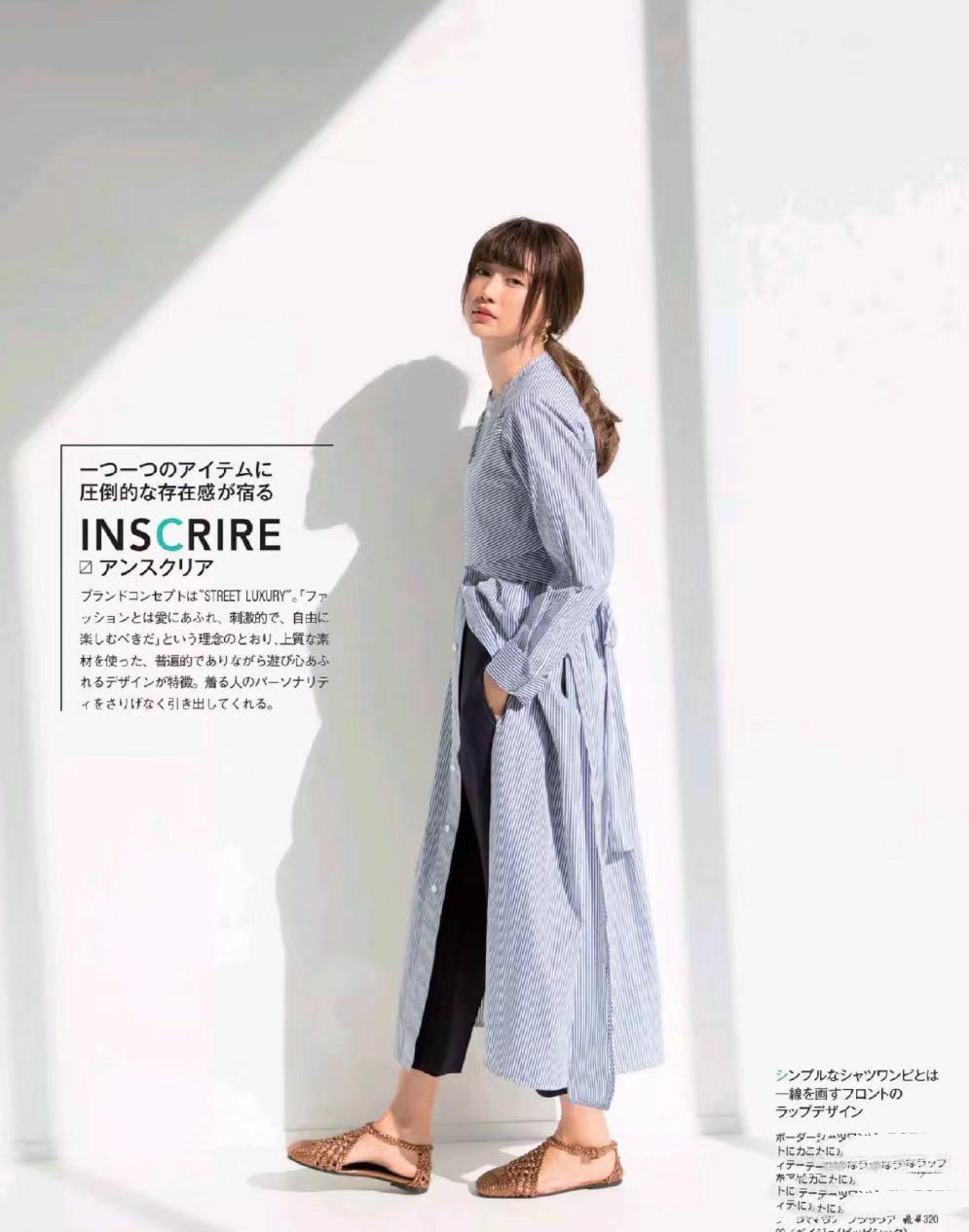 利落的小豎領襯衫裙,經典的細條紋款式,當然是與九分小黑褲更配呀。解開襯衫裙的紐扣,營造出高腰線,浪漫又時尚的氛圍,真是耐看。