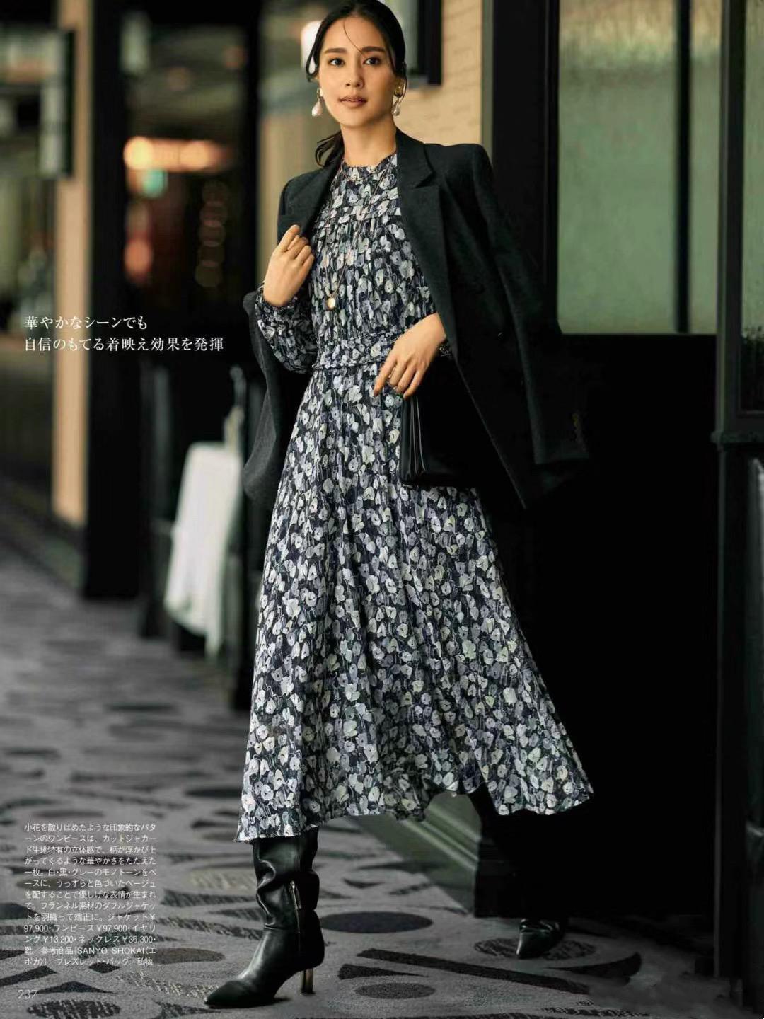 花色雅緻的碎花長裙,裙襬飄逸更顯溫柔。我們可以用白底的碎花裙,配黑色小外套,不僅溫柔浪漫,也更適合小個子。