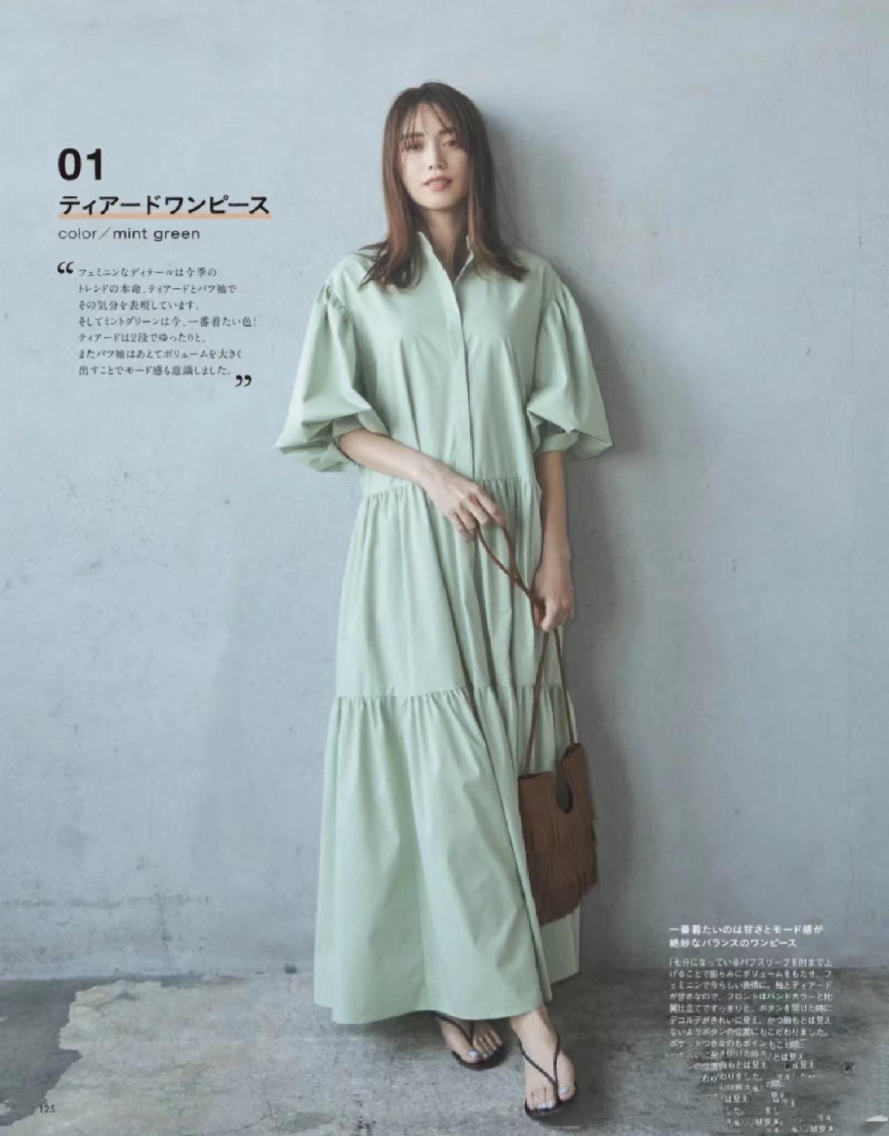 淺綠色的泡泡袖襯衫裙,總是給人一種很溫柔知性的美。淺綠色襯衫裙,配上寬鬆泡泡袖、也是那麼的舒適自在。