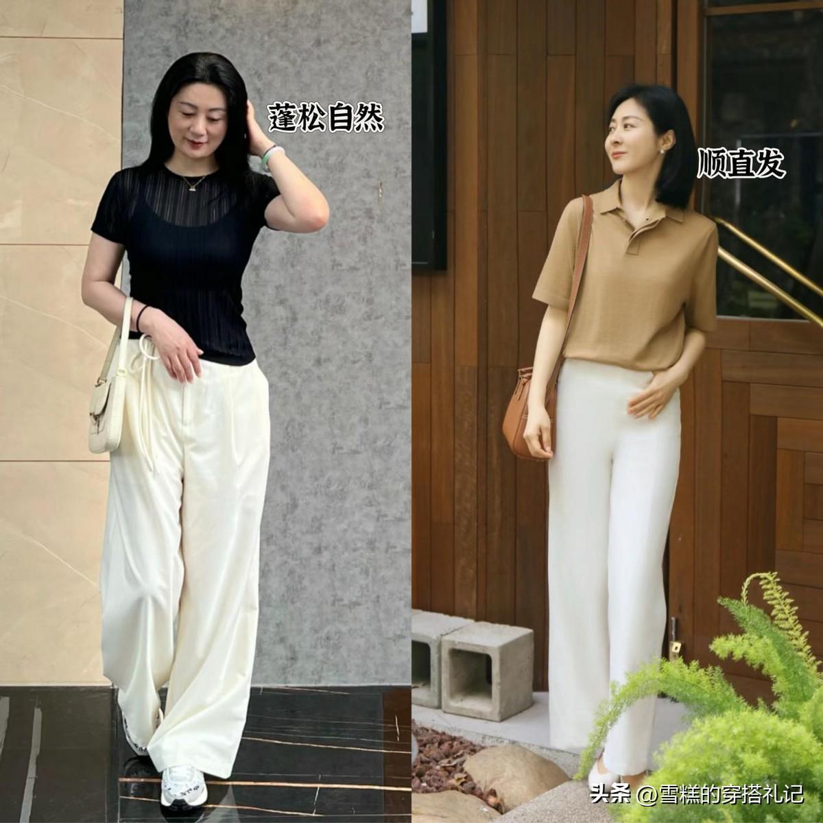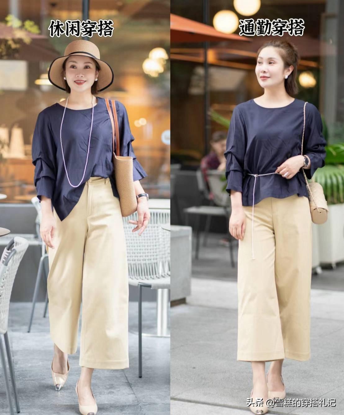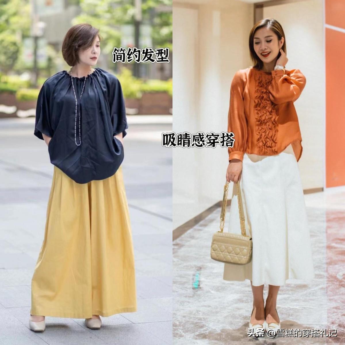對於很多中年女人來說,挑戰衣服其實最重要的是版型上的問題,版型足夠合身的衣服,才能穿出揚長避短的效果。上衣可以帶點修身的剪裁,下裝長度要遮住小腿,版型微寬鬆更遮肉。