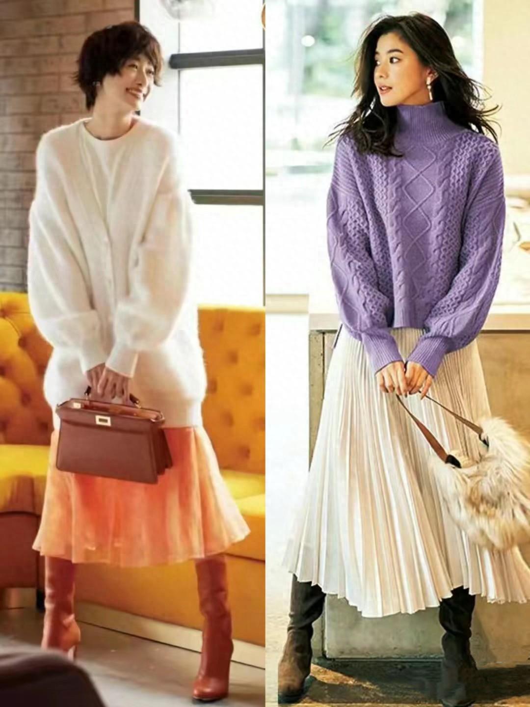 中年女人面對身材發福,最大的想法就是去掩蓋。以大裙襬、或者壓褶剪裁來修飾。但入秋後服裝厚重,色系沉悶,膨脹感強的百褶裙,反而會顯得發福的身材更豐滿。