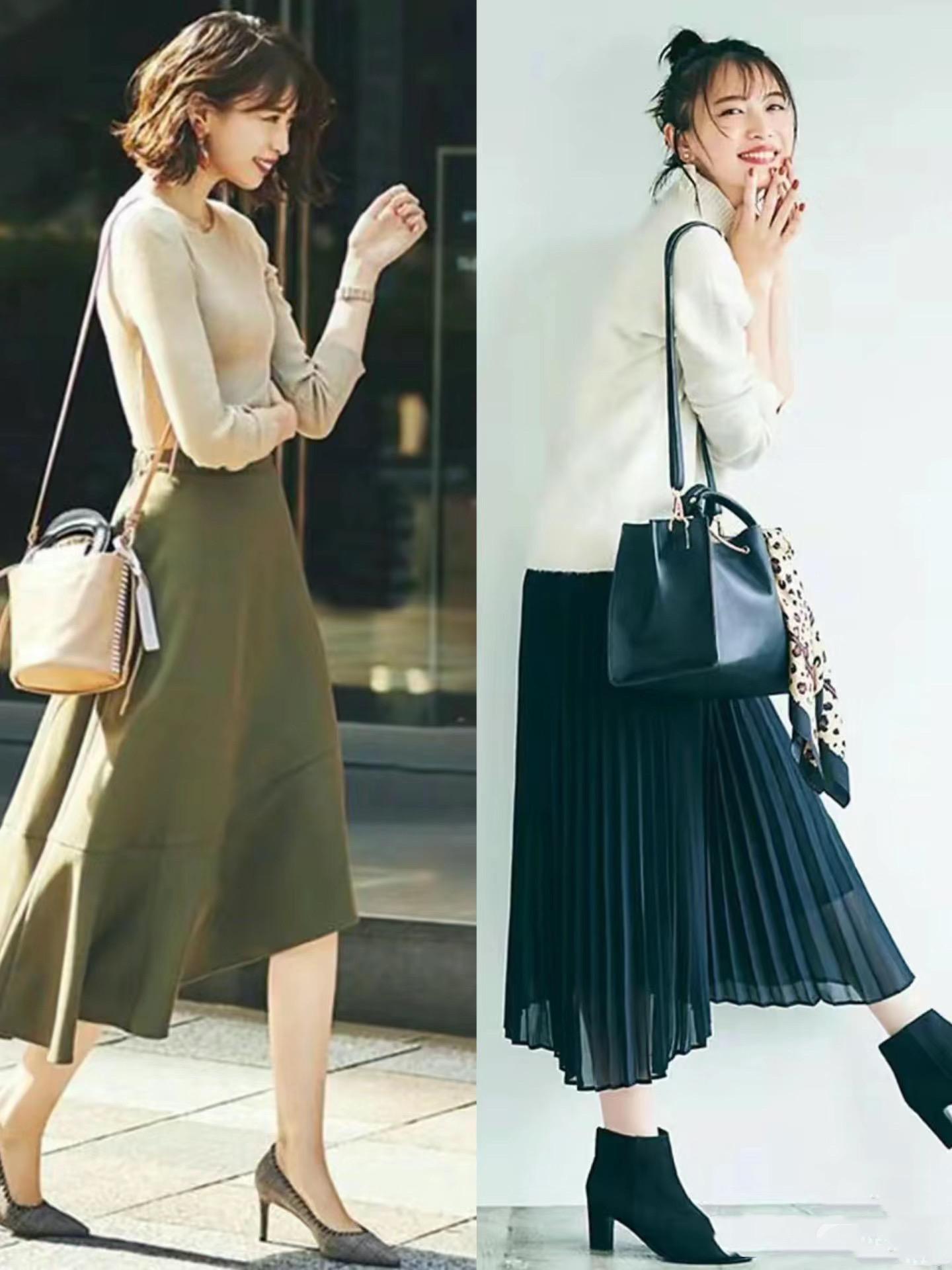入秋後一條厚實的開叉半身裙,可以選擇倒V形的剪裁,視覺上更清新、放量也不是很大。這樣的開叉半身裙,顯得雙腿更修長。