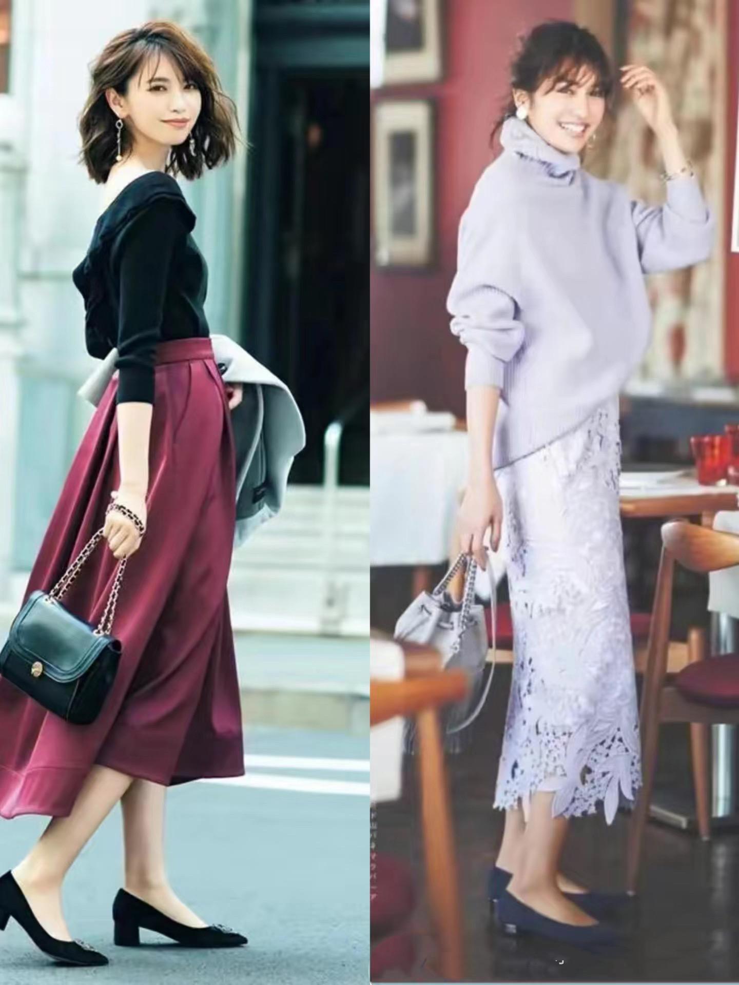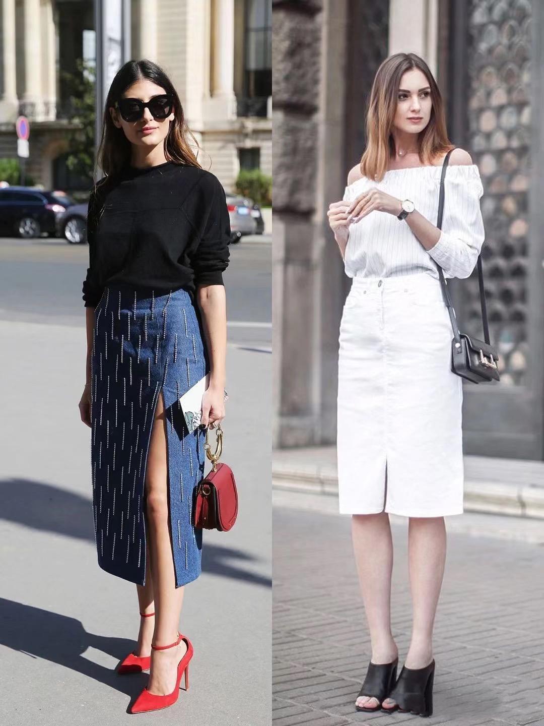 想要更端莊體面,開叉的元素可以稍微保守一點,大約10cm左右的小開叉就夠了。想要風情萬種,嫵媚撩人,高開叉的半身裙才更好拿捏。