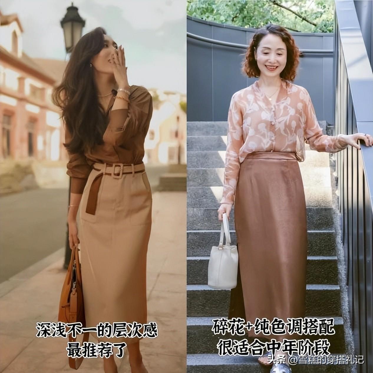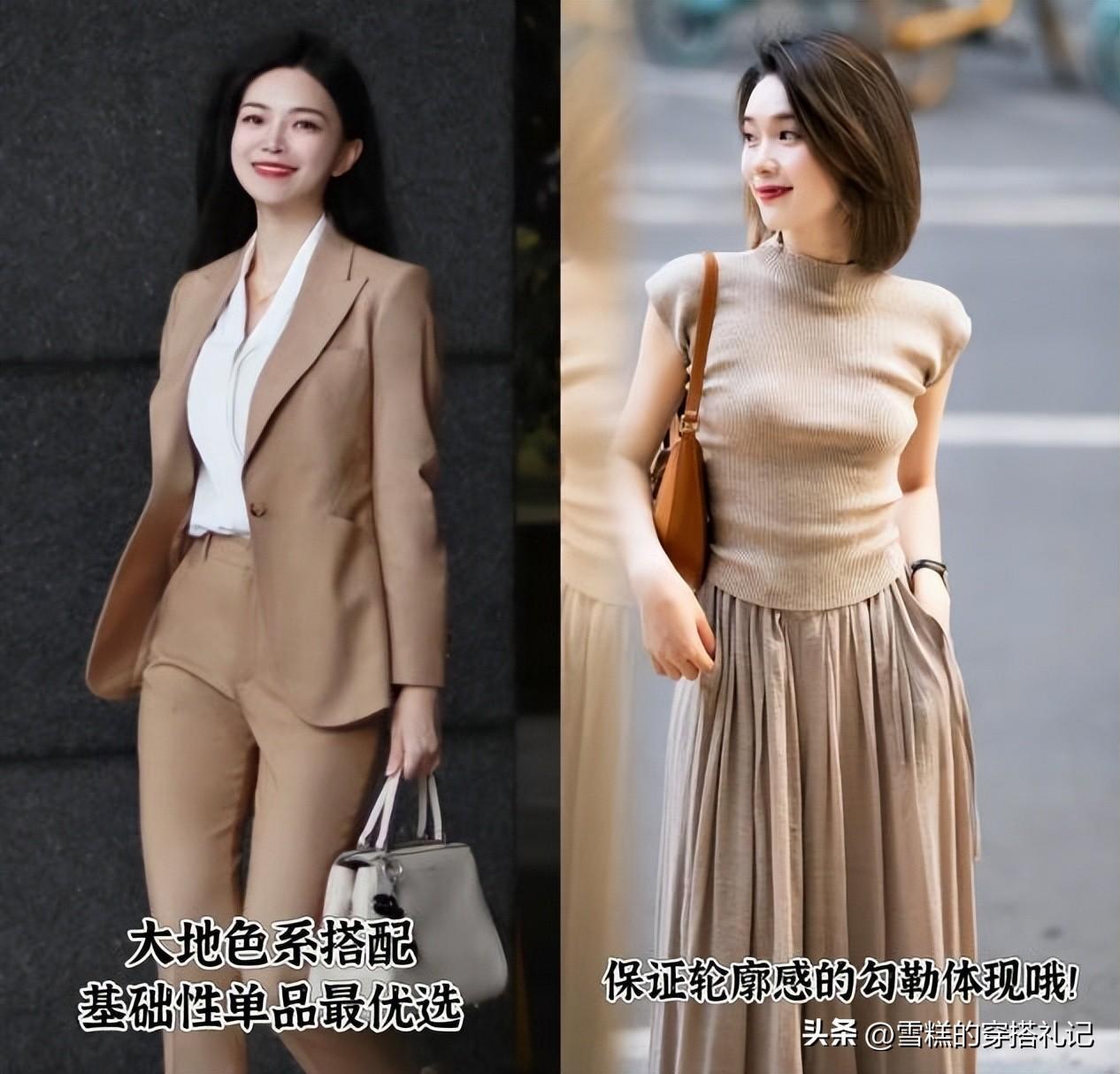 最後一種推薦給各位中年階段女性的真的是非常的適宜當下這個階段進行搭配,就是除去黑白灰這樣基礎色之外的中性色要比常規的基礎色更加顯高級一些,而且對於年齡階段又或者是身材狀態和氣質是沒有任何的要求的。