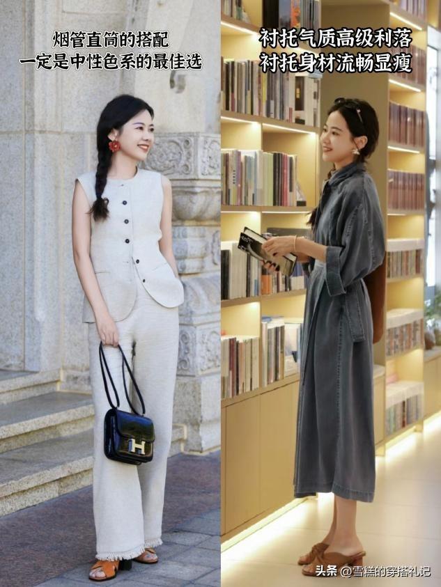 中性色的高級感其實也是需要選對單品的版型狀態來進行搭配的,在這裏推薦大家可以直接運用煙管直筒的系列,例如像長款的直筒長裙又或者是褲裝系列的搭配。對於我們本身的身材狀態的修飾效果也能夠使其彰顯的流暢好看又利落。